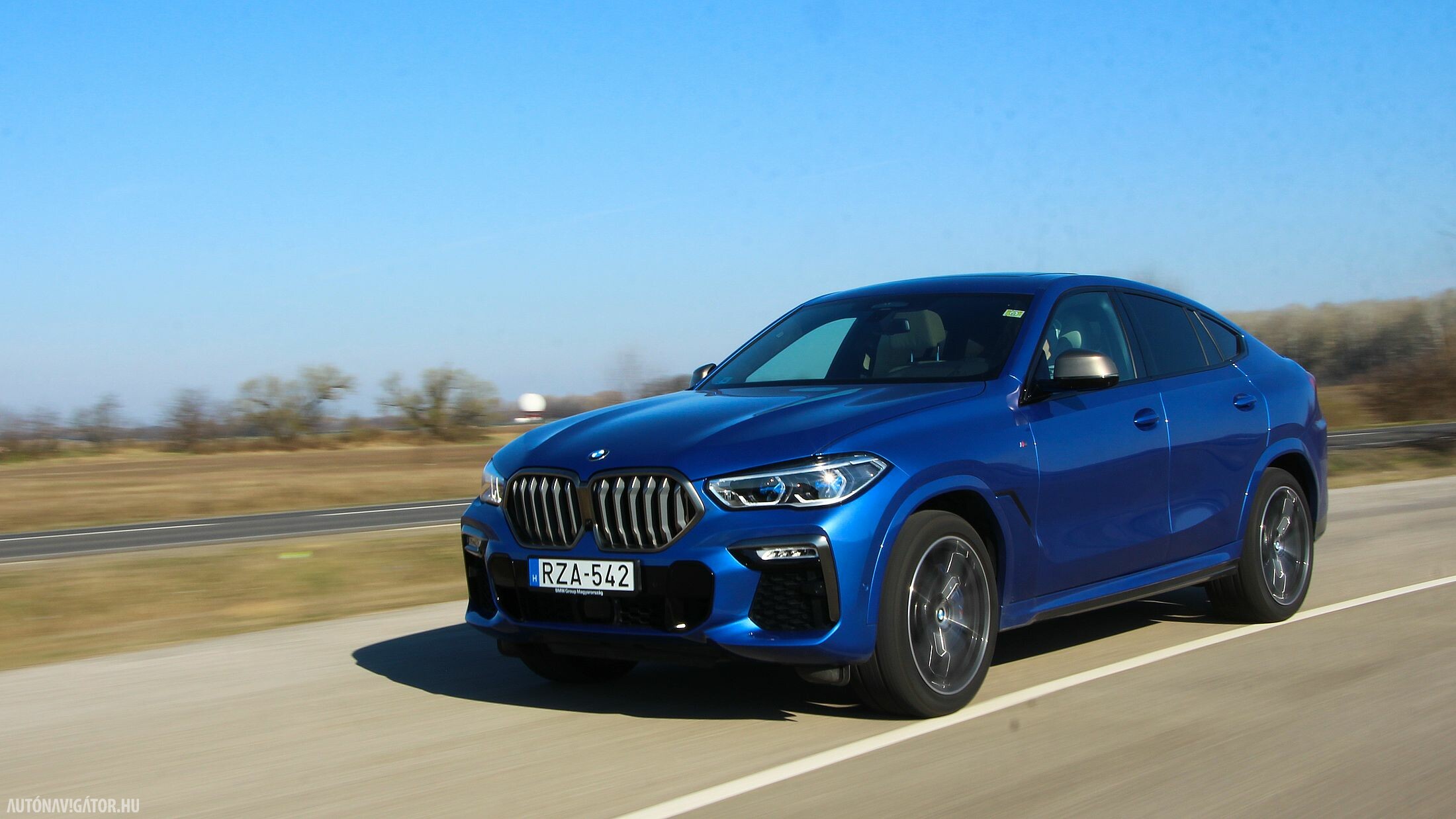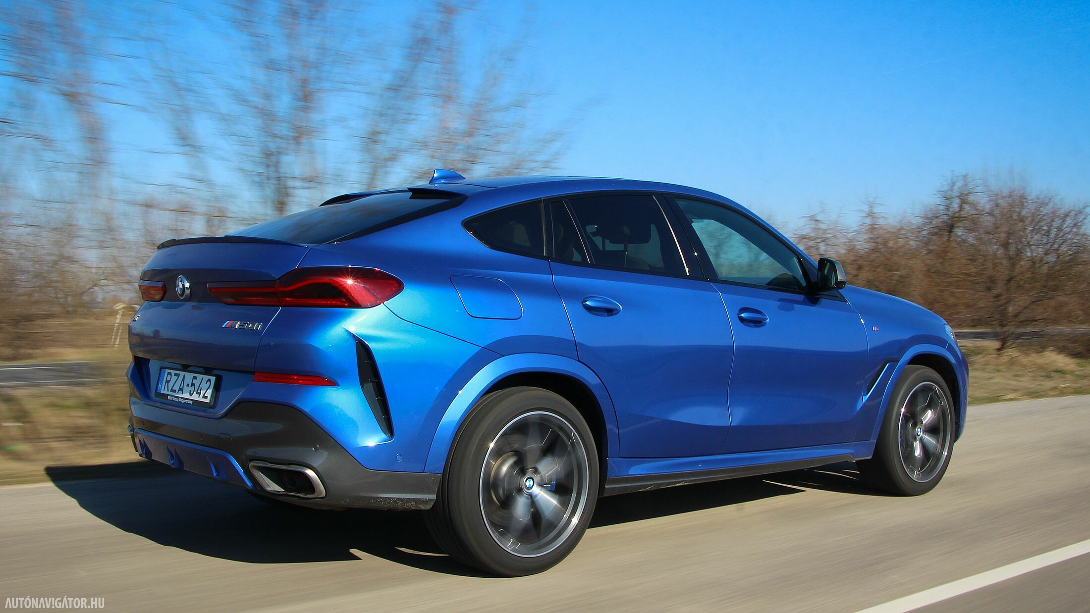850i Gran Coupéban. Klasszikus 90 fokos hengerelrendezésű egység, a hengerek közötti, kettős megfúvású turbókkal. A turbólyukat pedig tényleg csak az érzi, aki nagyon akarja. A fergeteges erő úgy lódítja meg, mintha csak egy falevél lenne a szelek szárnyán, ami 5,2 másodperc alatt százon van. A megállás pedig, na az már egy másik dolog. Szó se róla, erősek a fékek, nem tűntek fáradékonynak, de azért nem kimondottan jó érzés nagy sebességről lassítani ekkora tömeggel. Ahogy kanyarodni sem. Hiába a mérnökök kemény munkája, a fizikai törvényeken ők sem tudnak változtatni. Az X6 egyszerűen lecsúszik az ívről, és nem úgy, hogy először mondjuk az orrát tolja, vagy elmegy a fara, nem. Szépen, oldalazva letáncol az ívről. Természetesen összkerékhajtású az M50i, de olykor azért a nyomaték többnyire a hátsó kerekekre megy takarékkossági okokból, mégsem érdemes próbálkozni a riszáltatásával. Összességében elég bolondbiztos jármű, de hiába az M-betűk, sportautónak jóindulattal sem nevezhető, kevés visszajelzés érkezik az útról, így hiába közvetlen a kormányzás. Városban kényelmetlenül nagy, dugóbban araszolva pedig nem igazán ideális a hatalmas motor, bár az üzemmódválasztóval az Eco viselkedés is kérhető, de annak sűrű használatával is 19,7 liter lett az átlagfogyasztás. Igaz, ez többnyire városi kilométerek és sok szimpla túráztatás eredménye.