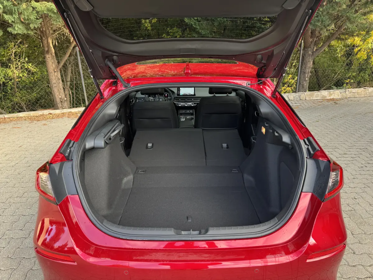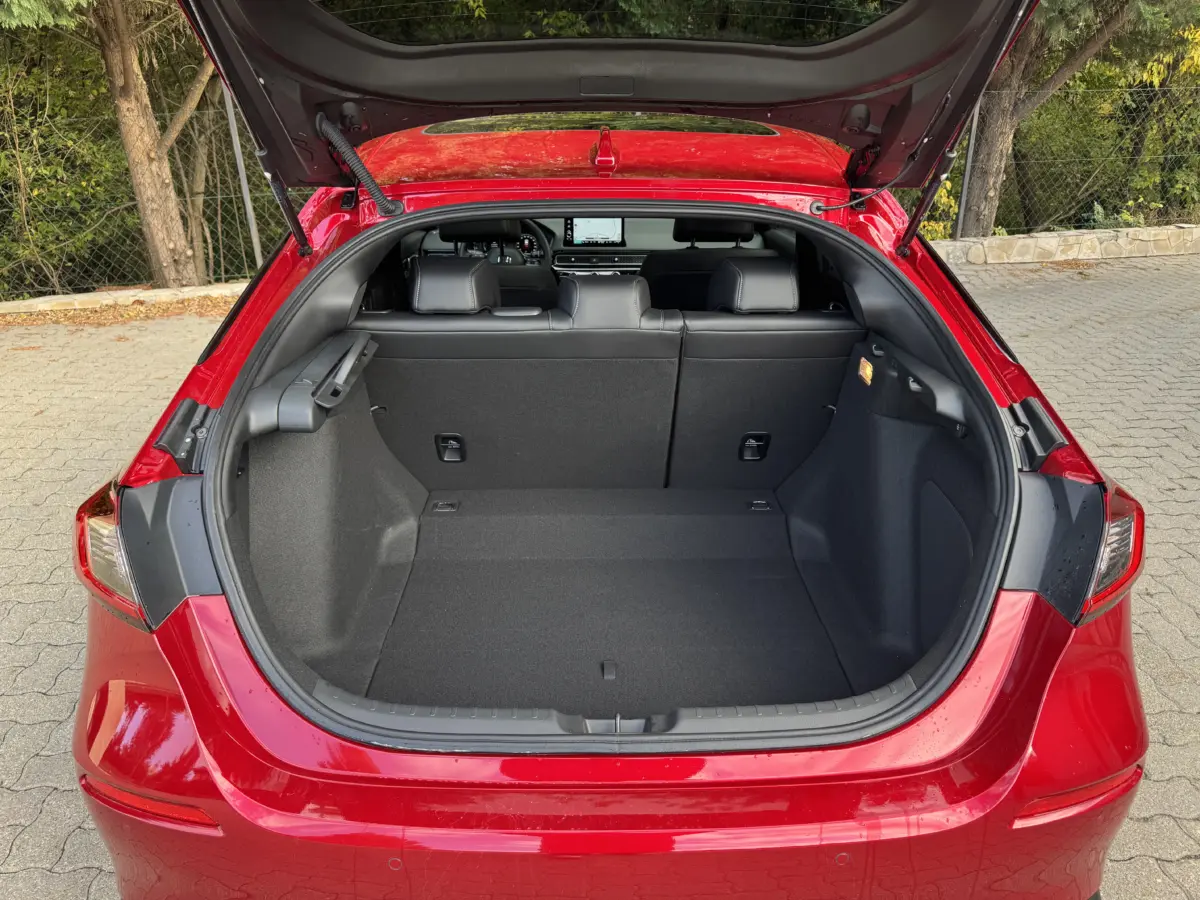 A hibrid Civicbe is tökéletesen elegendő a 200 lóerőnyi rendszerteljesítmény, mert amúgy is ott van még a benzinmotor 186 Nm forgatónyomatéka és a villanymotor 315 newtonmétere. Bármikor megugrik az autó ha kell, a százas sprintje 8,1 másodperc a vég pedig 180 km/h. Sokkal fontosabb azonban, hogy az erőt az első kerekek felé továbbító e-CVT sebességváltót nagyon ügyesen hangolták, jól összedolgozik a motor hangjával, fordulatával, így soha nem zavaró. A fogyasztás ugyancsak fantasztikus. A gyáriak kerek ötliteres vegyes fogyasztást prognosztizáltak, amit nekem sikerült 4,5 literen tartani, de akkor sem ment 6 liter fölé, amikor egy kicsit nagyobb karikát mentem az országban.