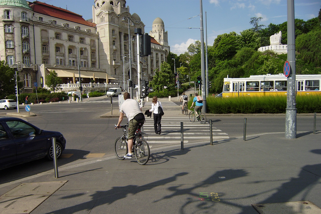 A belső forgalmi sáv mentesül a kerékpáros forgalomtól, így egyenletesebb és biztonságosabb lehet a gépjárművek haladása."