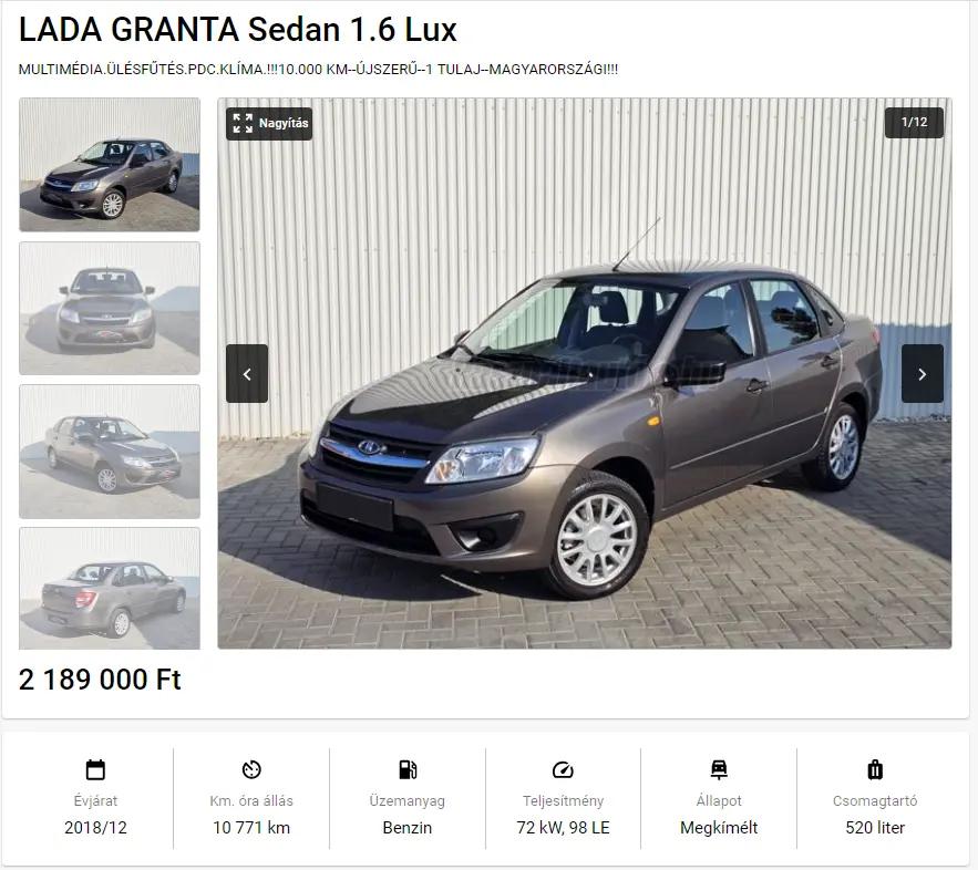 Cikkünk összeállításakor azonban az a típus nyert, ami általában a legolcsóbb és legkevesebbet futott autók listáját vezeti a hazai használtpiacon, a Lada Granta.