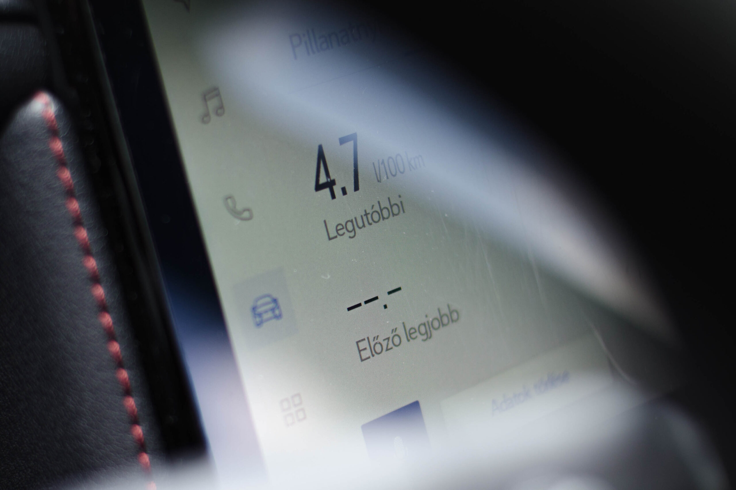 Kárpótol viszont mindezért a 12,3 colos műszeregység, illetve az alacsonyabbra helyezett multimédiás egység, mindkettő tucatnyi módon testreszabható. Illetve ami számomra felüdülés volt: rengeteg gomb került a képernyő alá, amellyel szinte minden funkció legalább részben vezérelhető, hogy ne kelljen lenézni az útról egy-két gyors állítgatáshoz.