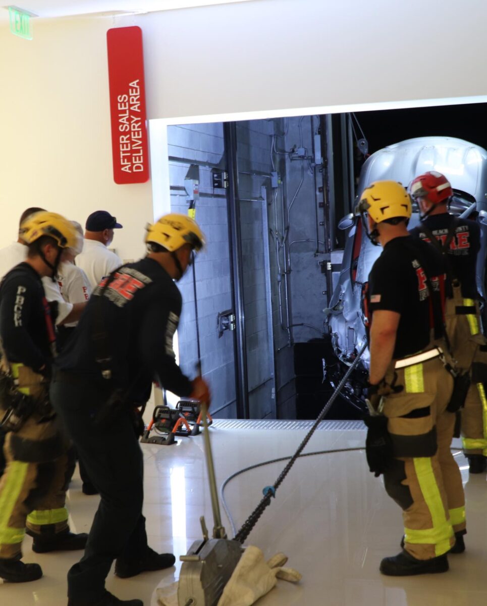 Így néz ki egy több emelet magasból liftaknába zuhant Ferrari, egyenesen Amerikából (Fotók: Palm Beach County Fire Rescue)