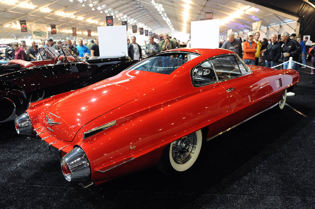 Amikor itthon még Nagy Imre uralkodott, azaz 1954-ben egy Chrysler Imperial alapjaira tervezte és építette meg ezt a fantasztikus karosszériát a Ghia. A Desoto Adventurer II Coupe tanulmányautó volt, ezt a lehúzható hátsó szélvédő is igazolja, a gyönyörűségért pedig 1 430 000 dollárt hagyott ott új tulajdonosa.