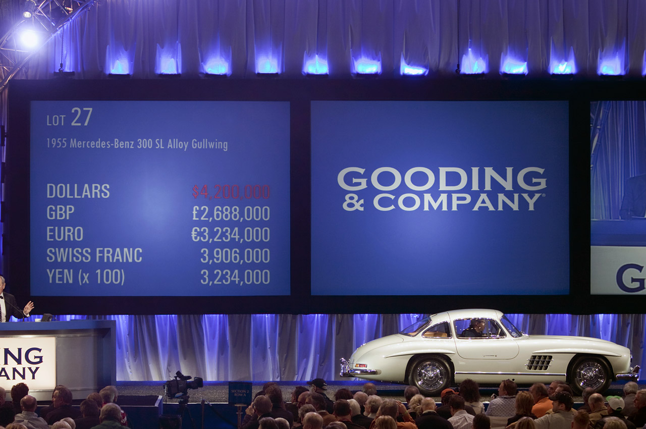 A legnagyobb összegű autócsere viszont a bevezetőben említett Gooding & Company árverésén történt. A Mercedes 300 SL Gullwing, azaz sirályszárnyas típusainak egyszerűbb változataiért is könnyedén kifizetnek egymillió dollár feletti összeget, de ez az 1955-ös példány a 29 szuperkönnyű, alumíniumból épített változat egyike. Az előzetes várakozások 2,5-3 millió dollár környékére várták a leütési árat, de az autó ritkasága annyi jelentkezőt vonzott, hogy végül 4,2 millió lett a legmagasabb ajánlat. Így aztán végül 4,62 millió dollárért vitték haza ezt a csodálatos szerkezetet, mely az ezért a típusért eddig kifizetett legnagyobb összeg.