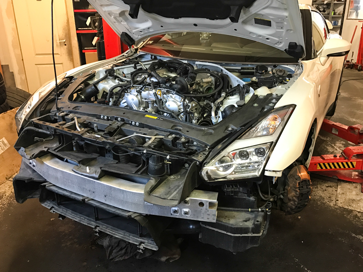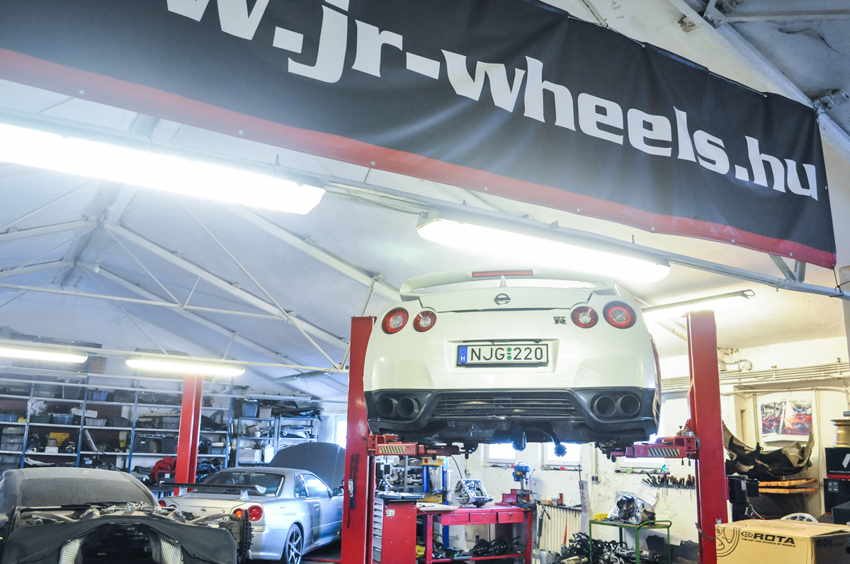 Jelenleg legtöbbször egy emelőn ágaskodik, ám vadiúj méretes intercoolerét már büszkén viseli az egyébként Black Edition GT-R. A mostani átalakítás árából egy másik GT-R-t lehetne venni