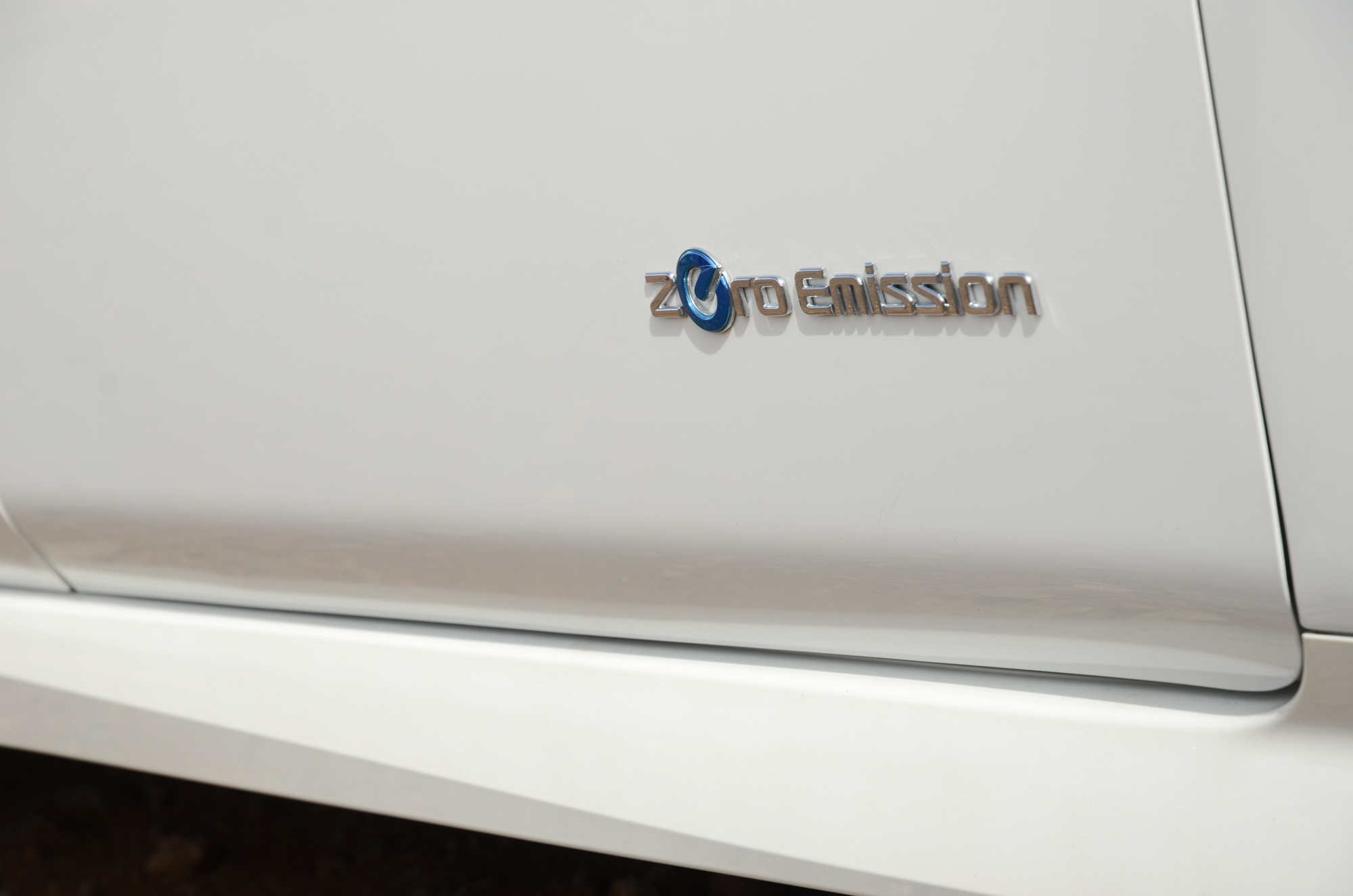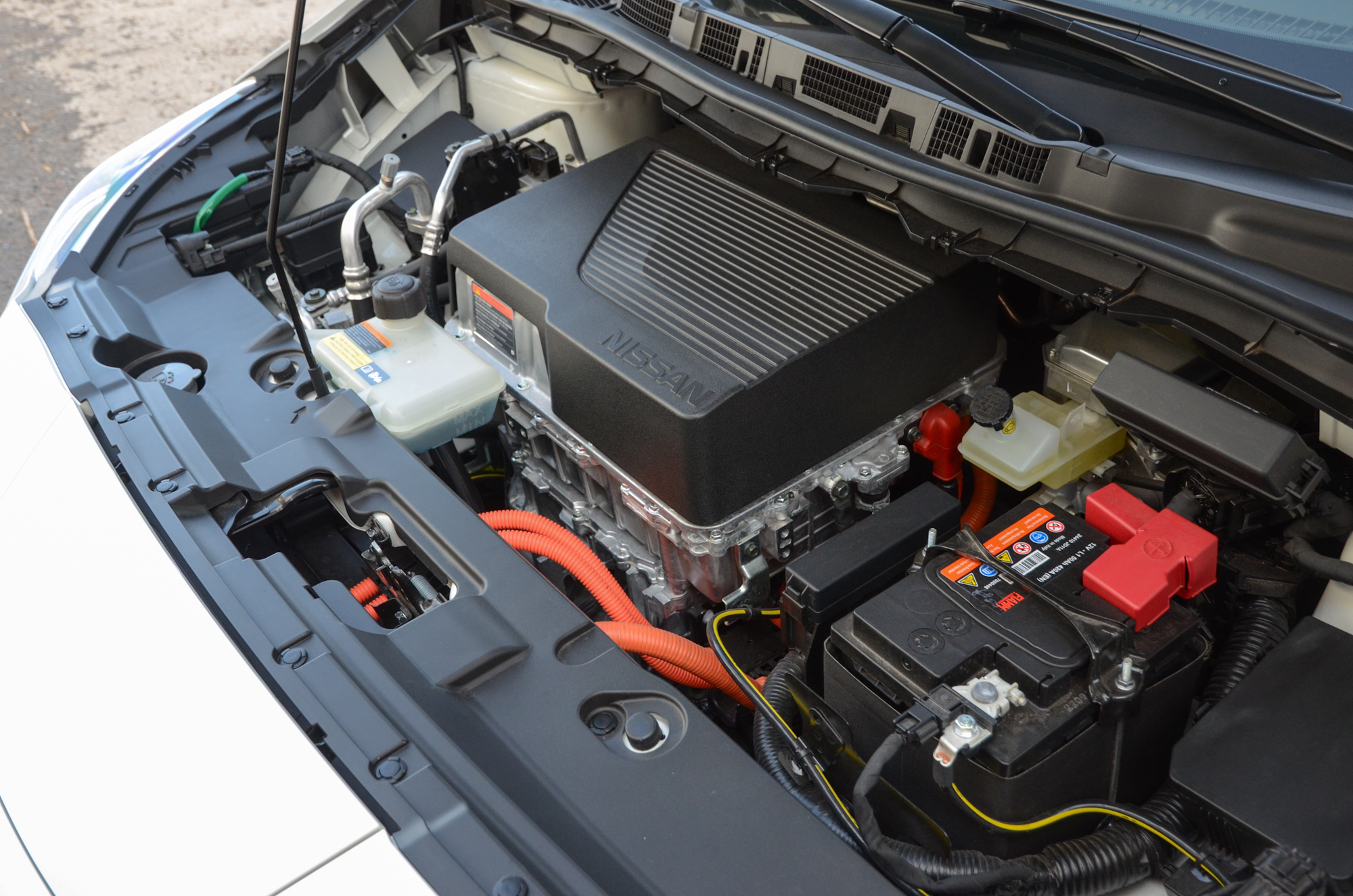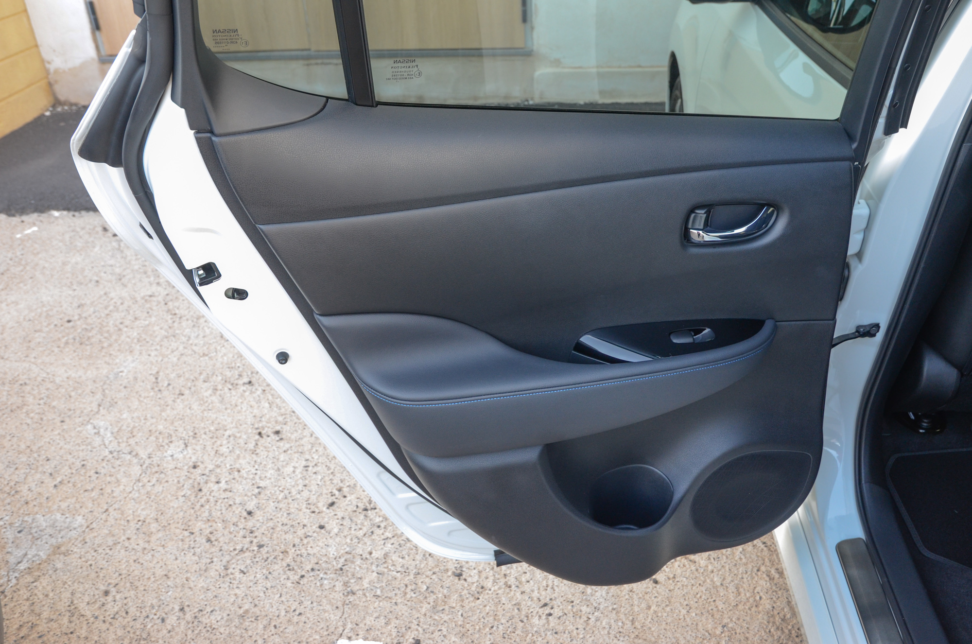 Hűtőmaszk helyett csak egy műanyag burkolatot kapott a Leaf, amely mögött szenzorok sorakoznak, a felette lévő kis ajtó pedig a töltőcsatlakozókat rejti