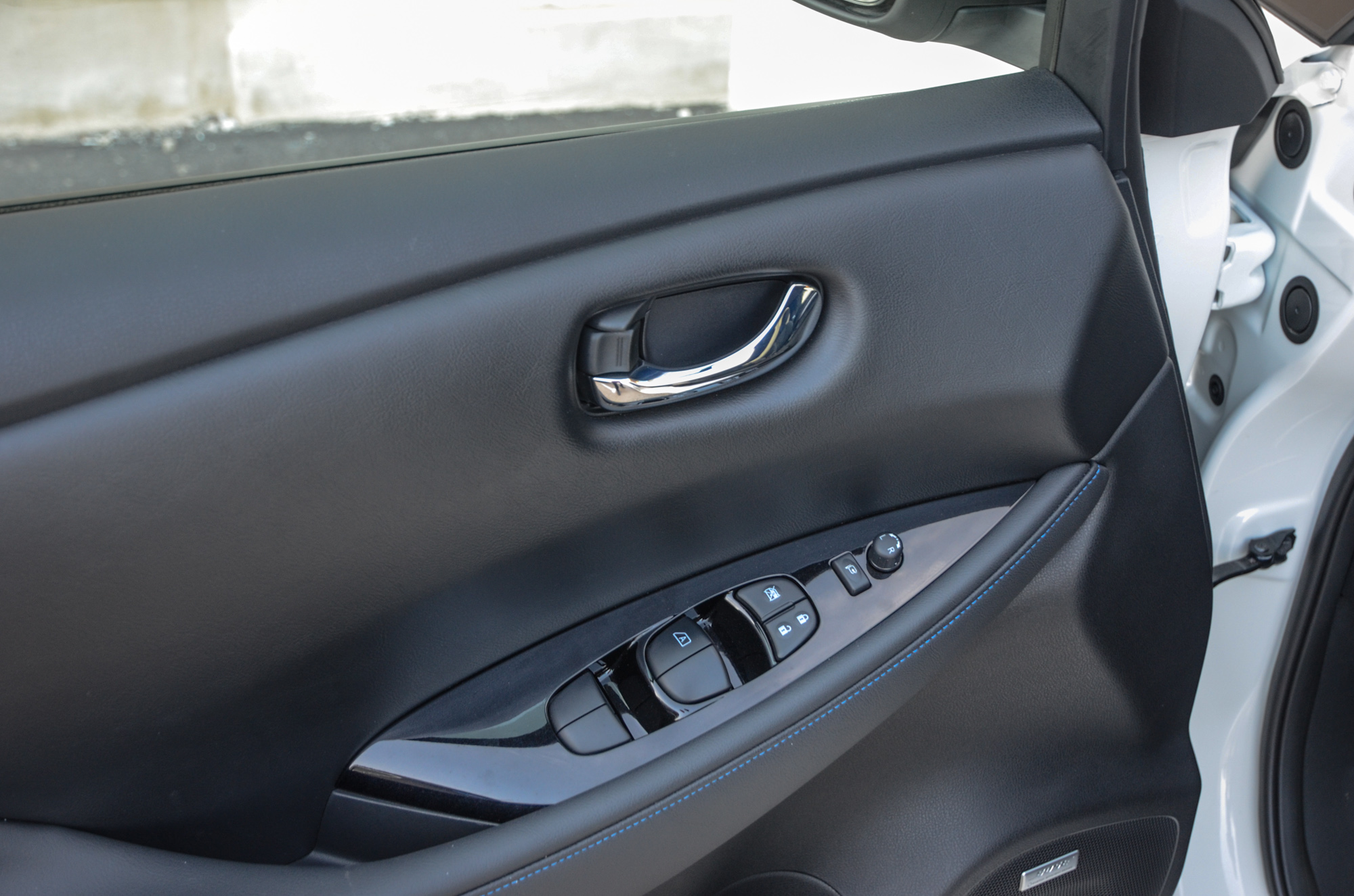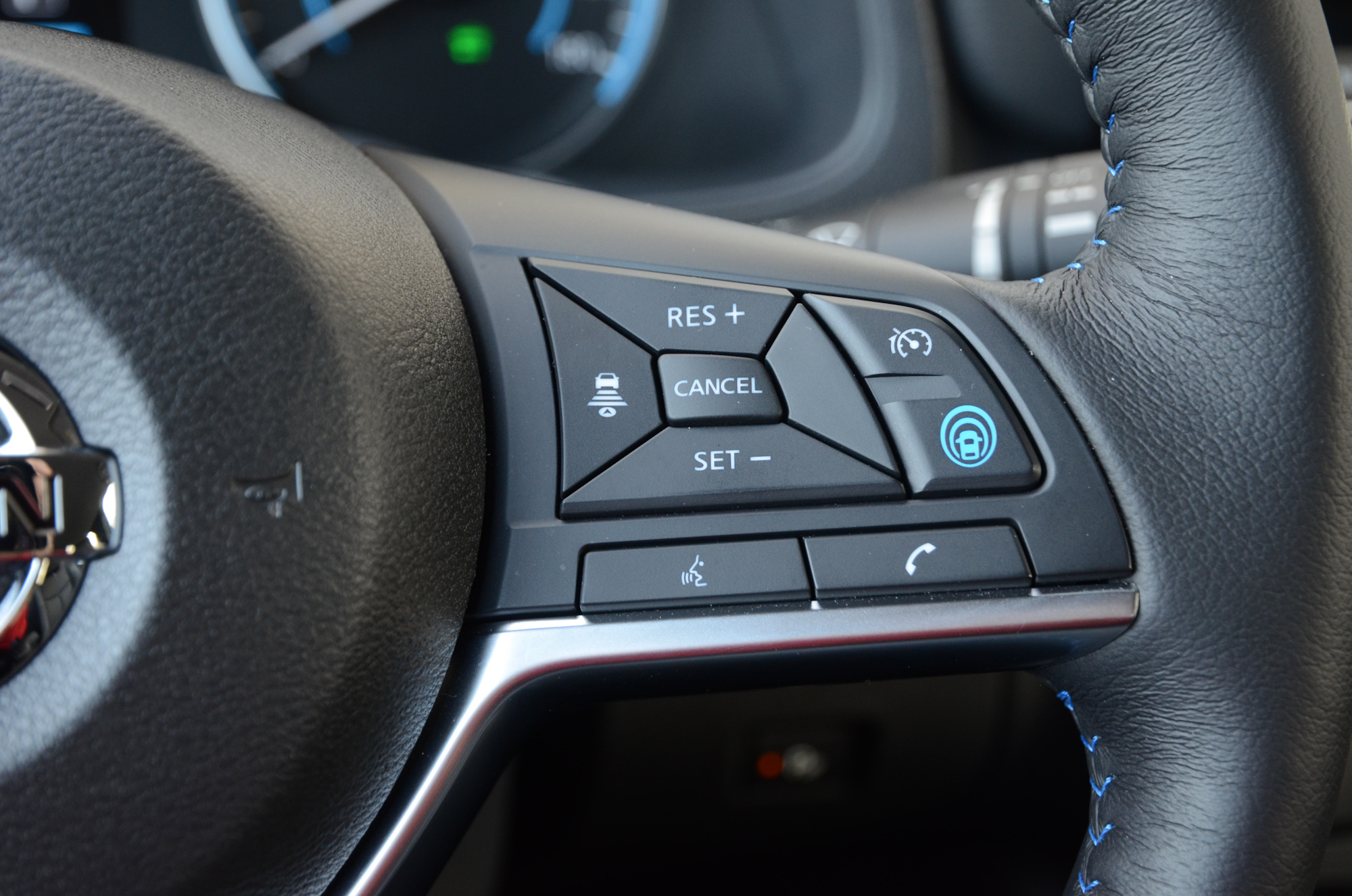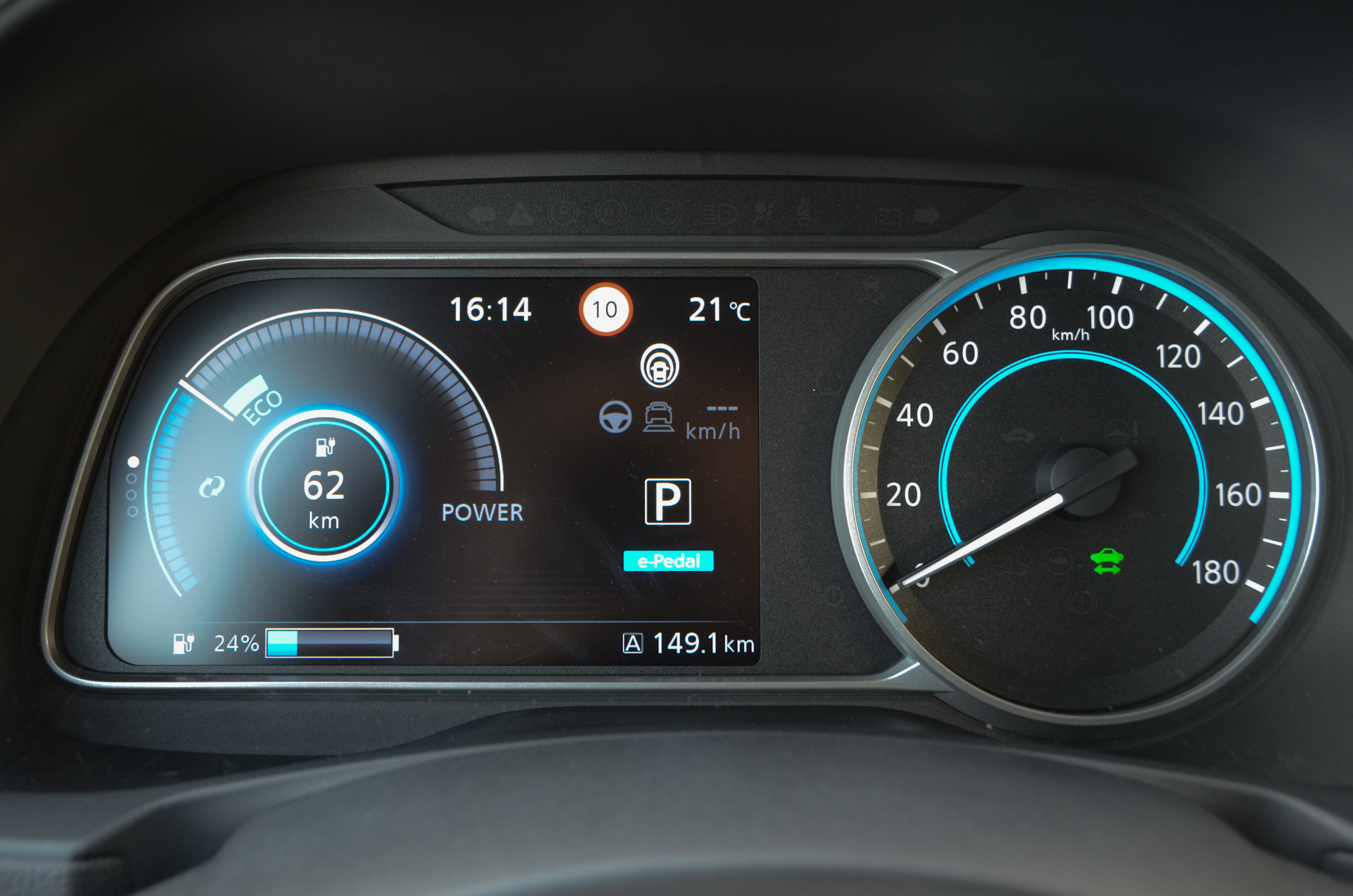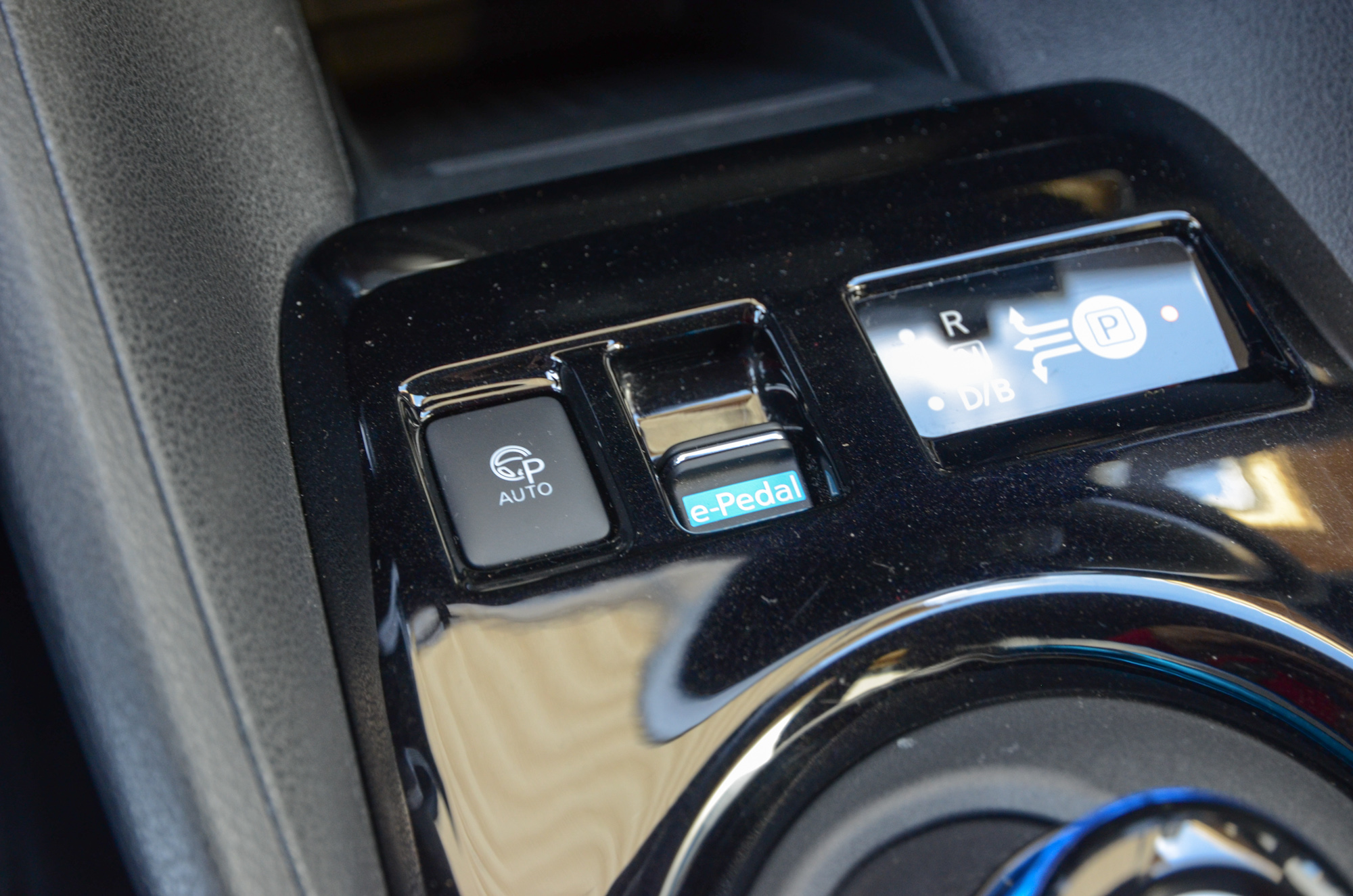 A vezetésben egy teljesen új élményt hoz az e-Pedal. A lényege, hogy a gyorsítópedál egy potméterként funkcionál, amelynek hatását leginkább lassításkor érezzük. Akár 0,2 G-vel is képes lassulni az autó, ha hirtelen lekapjuk a lábunkat róla. Egyébként amilyen mértékben engedjük vissza, olyan erősségű motorféket kapunk. Teljesen elengedve meg is állhatunk vele, sőt, emelkedőn, lejtőn meg is tartja a pozíciót, azaz egy auto hold funkciót is rejt magában. Enélkül D állásban enyhe, B állásban erősebb motorféket kapunk, így összesen három különböző módban és motorfékkel vezethetünk. Az e-Pedalos módszer komoly megszokást igényel, parkoláskor pedig célszerű kikapcsolni, mert igen idegesítő tud lenni, hogy gázelvételre szinte azonnal megállunk.