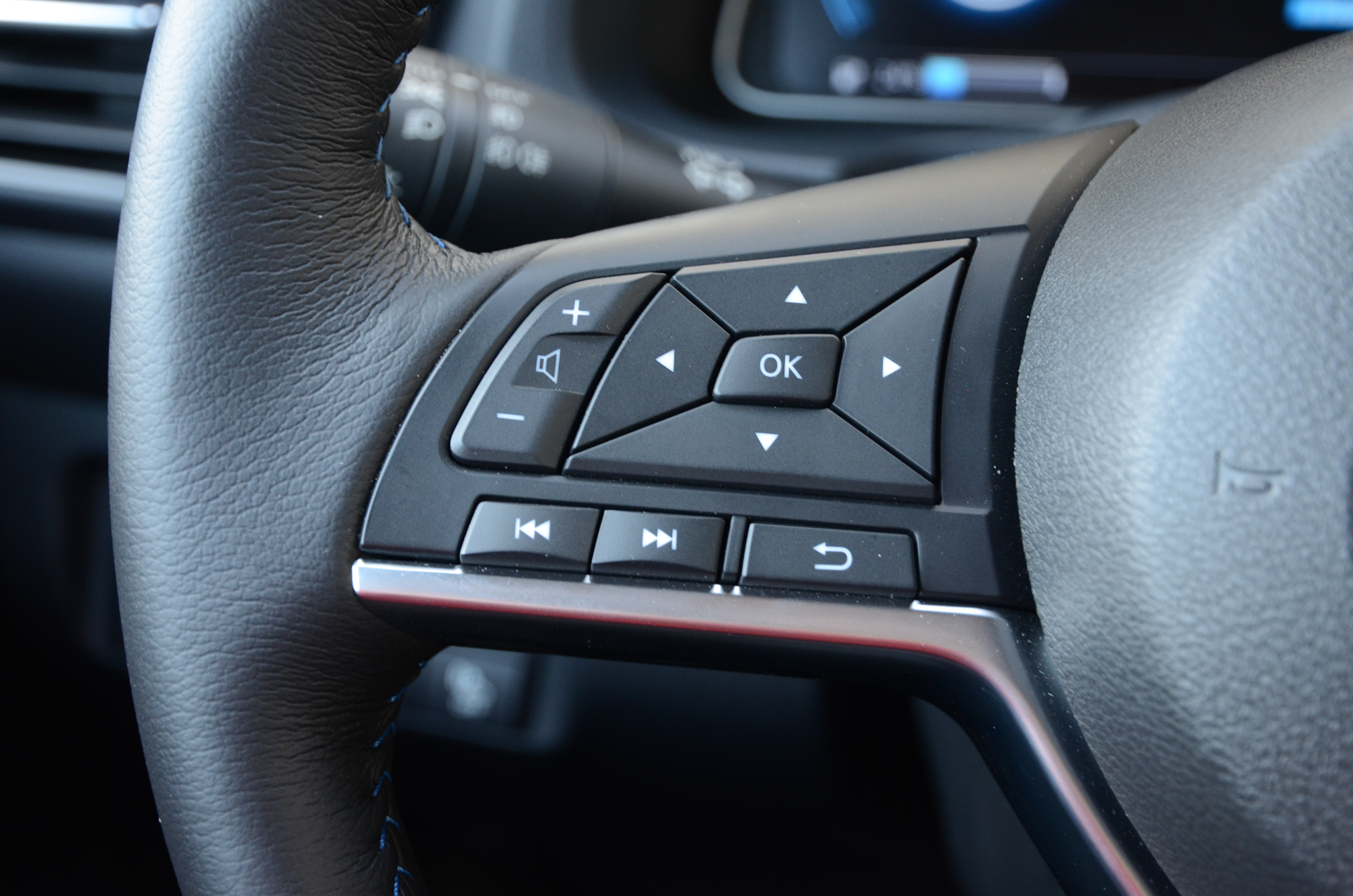 Ugyanez mondható el a belsőről is. A korábbi műszerfal sokkal hétköznapibb, átláthatóbb lett, az egész kokpitet úgy alakították ki, hogy a vezetőre legyen szabva. A 7 colos infotainment kijelző teljesen új, a többi Nissannál megszokott könnyed áttekinthetőséget kapjuk itt is. Dedikált gombok a legfontosabb menüpontoknak, ezen felül pedig érintőképernyő segíti a könnyebb kezelést. A kormány ugyanaz, mint amit a frissített X-Trail és Qashqai tavaly megkapott, ami jó fogást ad,, és látványra is hibátlan. A NissanConnect rendszere a Bluetooth csatlakozáson túl Apple CarPlay és AndroidAuto támogatást is ad.