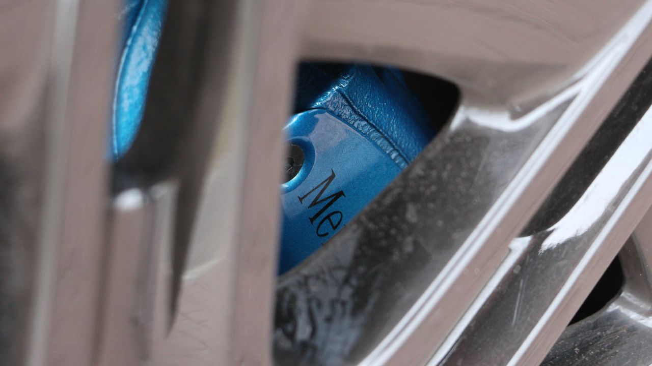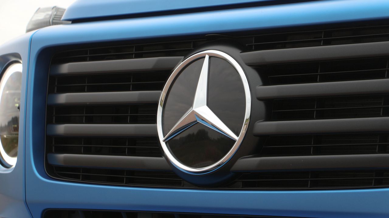 Elöl a kék féknyergen a Mercedes-Benz felirat olvasható