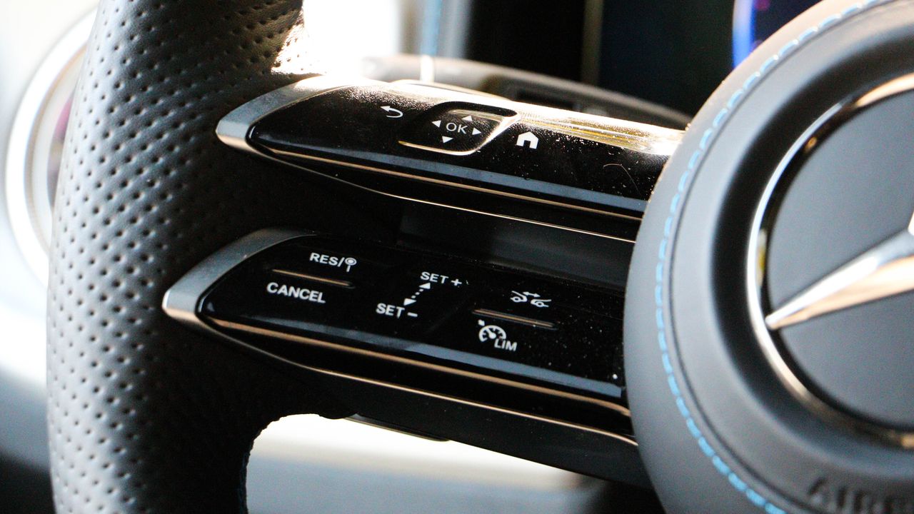 Az érintőképernyő túl messze van a vezetőüléstől, főleg a jobb oldala. A G-osztályban is egyetlen gombnyomással kikapcsolható a sebességtúllépésre figyelmeztető csipogás a panel bal felső sarkába „kattintva”