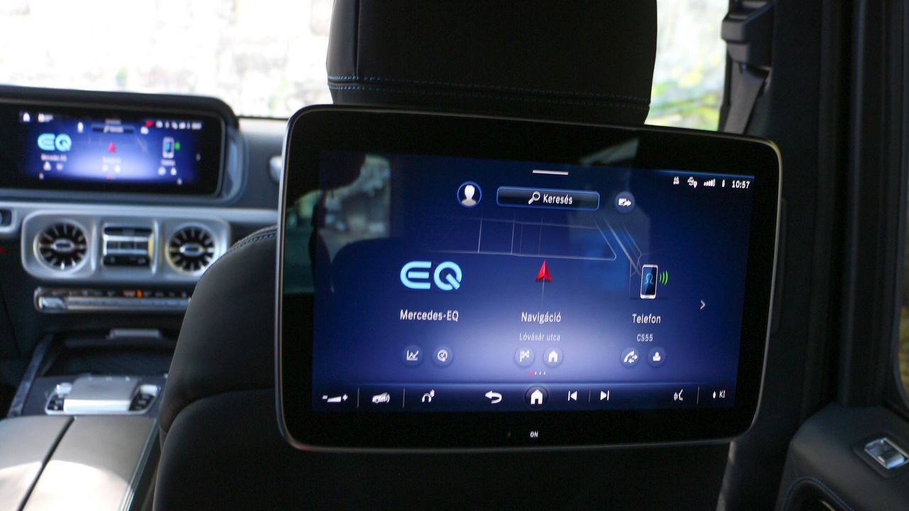 A G-osztállyal eddig sem volt egyszerű elvegyülni a forgalomban, azonban az Edition One kék fényezésnek köszönhetően a konkrét tesztautó szinte mindenki figyelmét felkeltette. De nem csak emiatt kiváltságos élmény vezetni a G 580-at. Remekül elnyeli az úthibákat a futómű, amely Comfort módban kifejezetten lágy. A kormányon lévő „váltókarokkal” ahogy a legtöbb elektromos autónál, úgy itt is a rekuperáció szabályozható, amely ha maximális visszatáplálásra van állítva, szinte egy az egyben kiváltja az egypedálos módot, a féket csak megállás esetén kell használni (illetve vészhelyzetben termesztésen). Az egyenesekben elképesztő módon meg tud indulni a 3,1 tonnás üres tömeg ellenére, a kanyarokkal viszont nem ápol jó viszonyt, középgyors tempónál is képes elúszni a hátulja, de ezt nem is pályanapozásra tervezték, szóval nem jár érte fekete pont. Cserébe jópofa funkciókkal igyekszik kárpótolni. Külön tetszett, ahogyan az autó a fényekkel bánik az utastérben. Például a szellőzőnyílások körvonala fűtés esetén pirosan, míg hűtés esetén kéken világít.