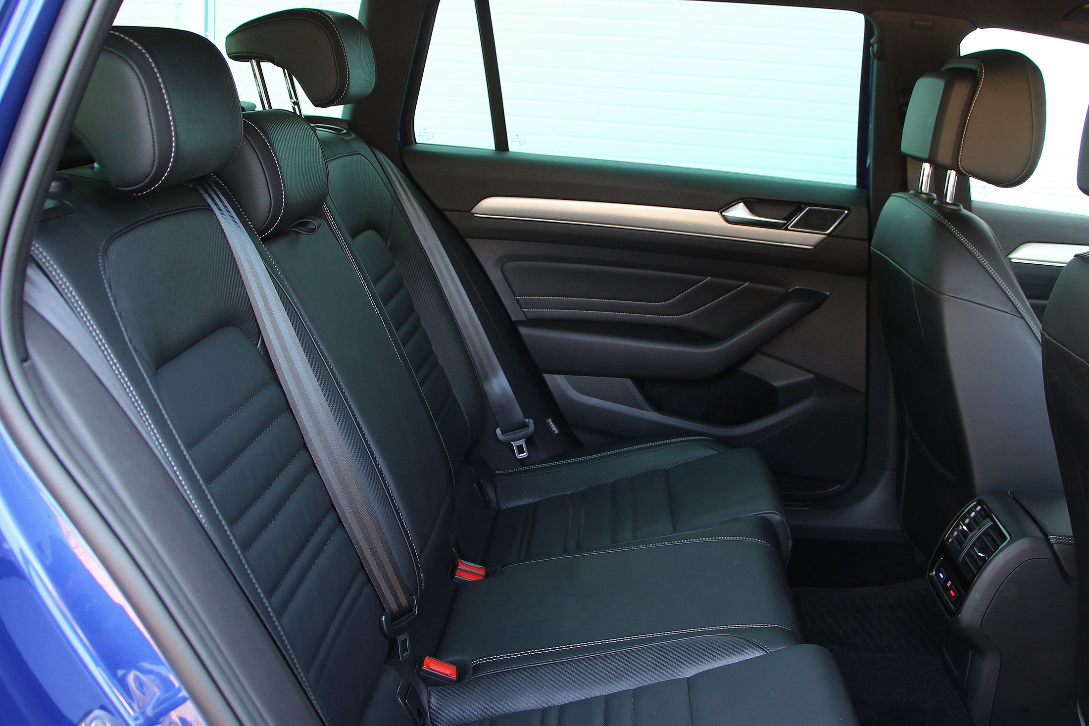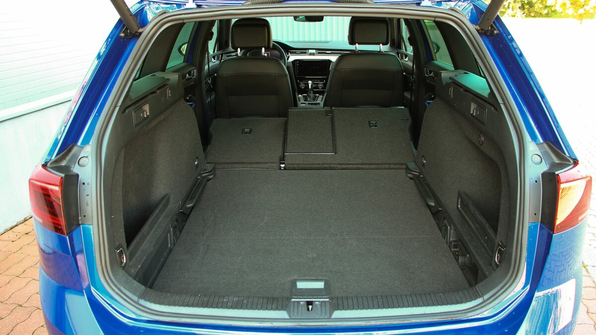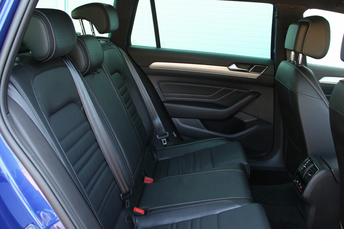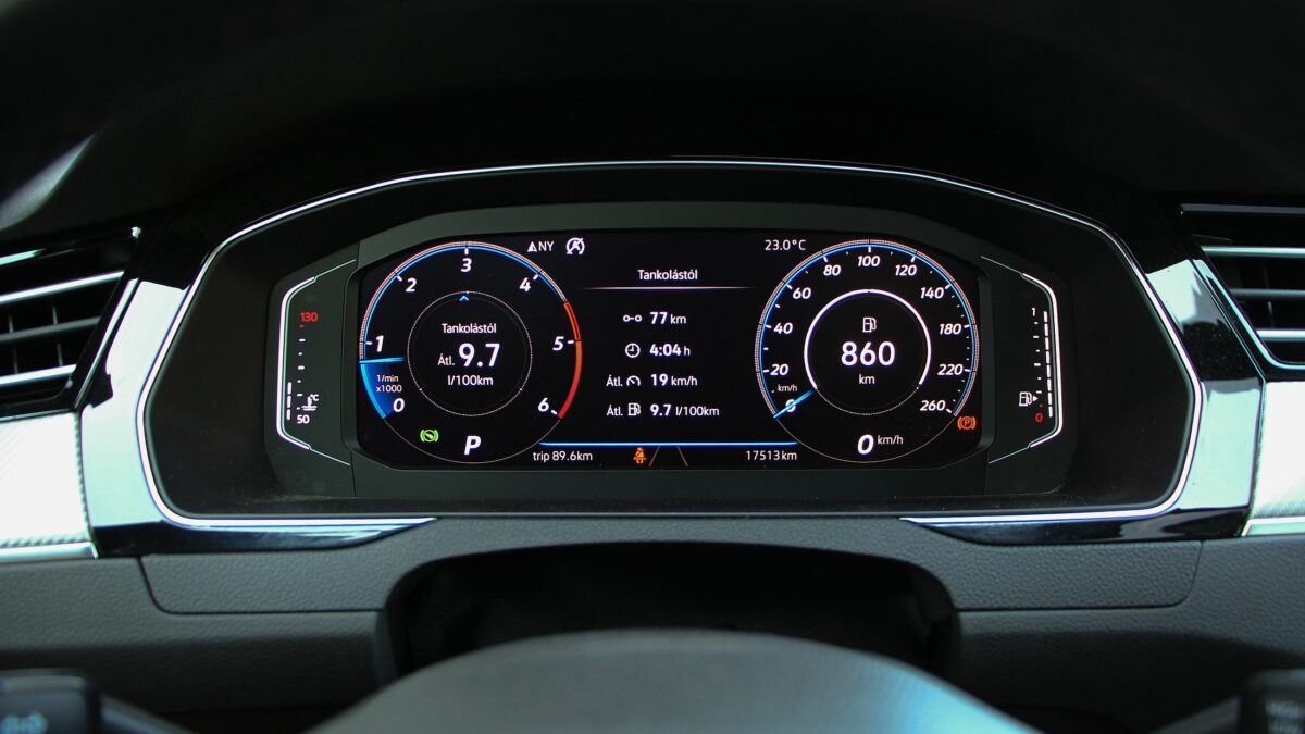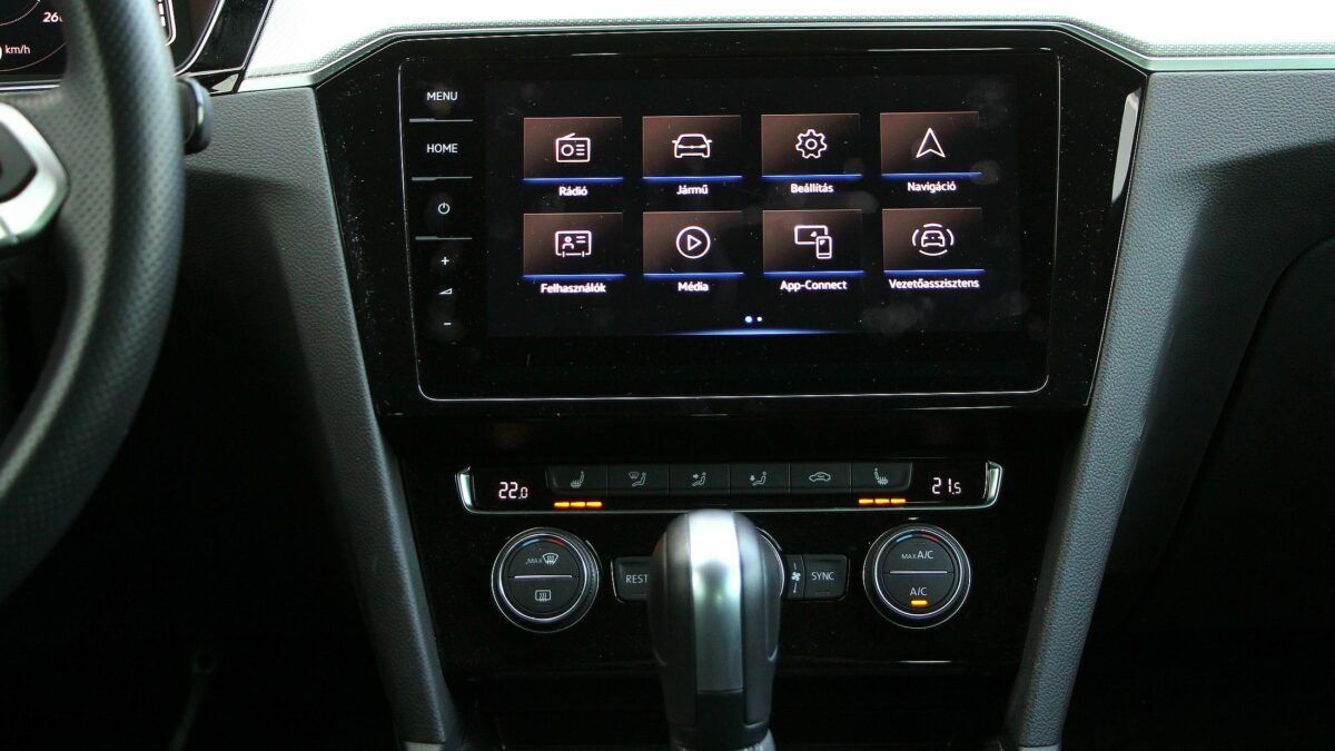 Pirospont jár a szép grafikájú digitális műszeregységért, és a hasonlóan szemkápráztató központi kijelzőért, azonban a gesztusvezérléssel is működtethető infotainment rendszer hajlamos néha veszettül belassulni. Viszont a hátsó utasoknak nem lehet okuk panaszra, az automata légkondi ott is pillanatok alatt hűsít vagy épp fűt, a lábtér pedig fejedelmi. Ahogy a csomagtér is óriási, alaphelyzetben 650 literes, természetesen bővíthető is 1780 literesre, ráadásul lehajtható csak a középső része is a hátsó üléssornak, ami jól jöhet hosszú tárgyak szállításakor. Nem spórolták ki a láblengetős ajtónyitást sem, ráadásul a Passatban egyből veszi a lapot a rendszer, nem szükséges táncikálni, mire észreveszi az érzékelő, hogy nyitni kéne a csomagtérajtót.