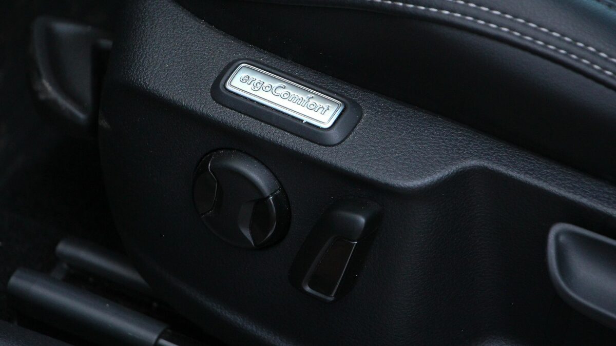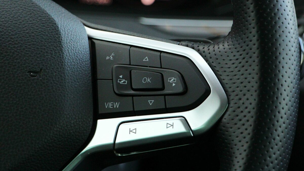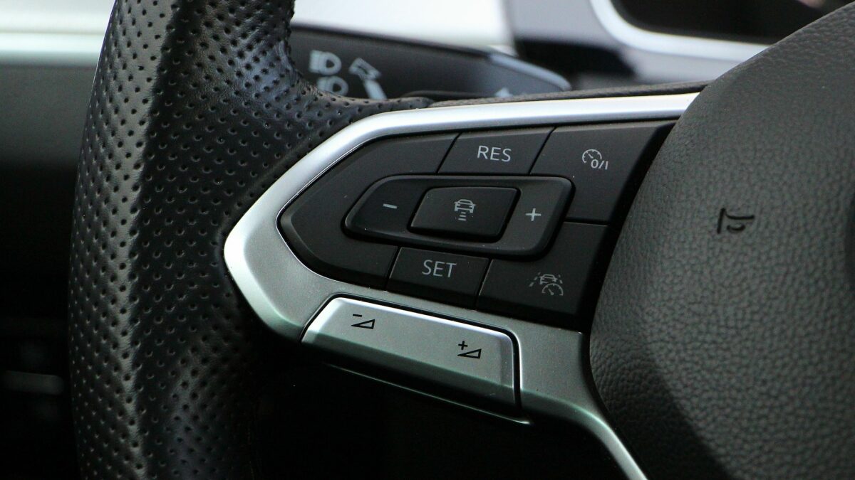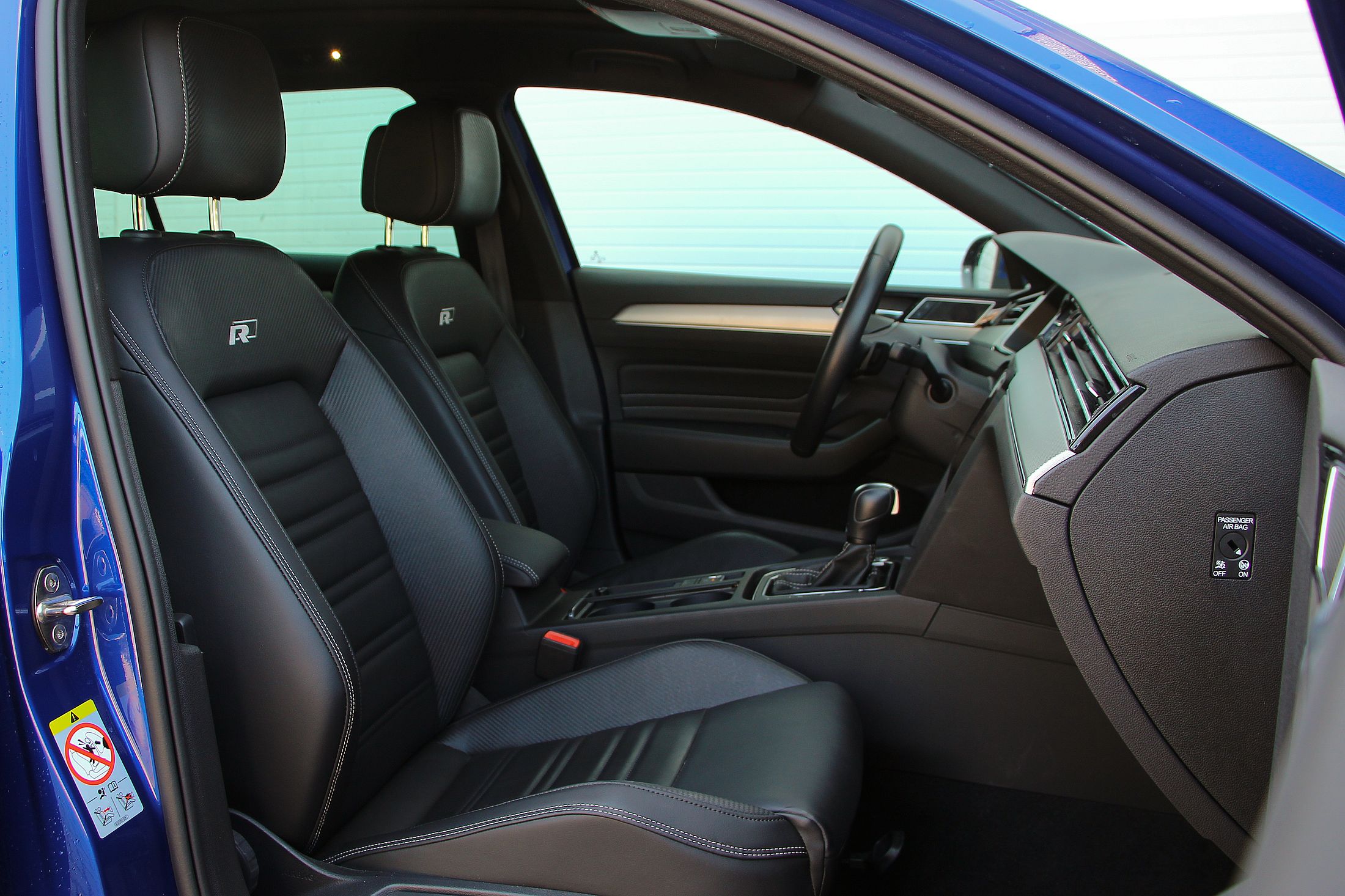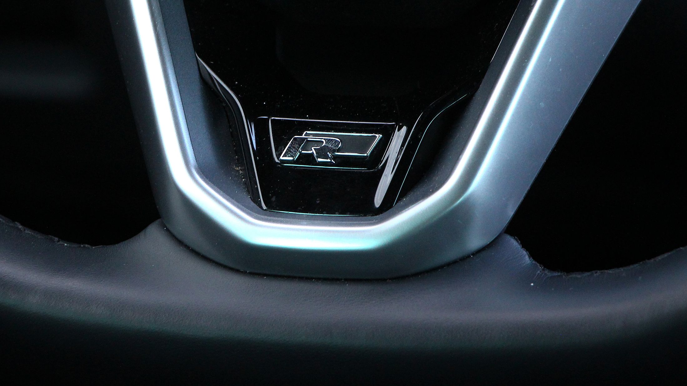 Talán csak az utastérben sajnálnám, ha az R-Line csomag néhány tétele hiányozna. Például a bőr sportülések, amelyek kiválóan tartanak derékban is, combtájékon is. Aztán ott van még az R-logós sportkormány, természetesen alul lapítva, amely már első pillantásra növeli a pulzust, és valóban nagyon kellemes szerkezet.