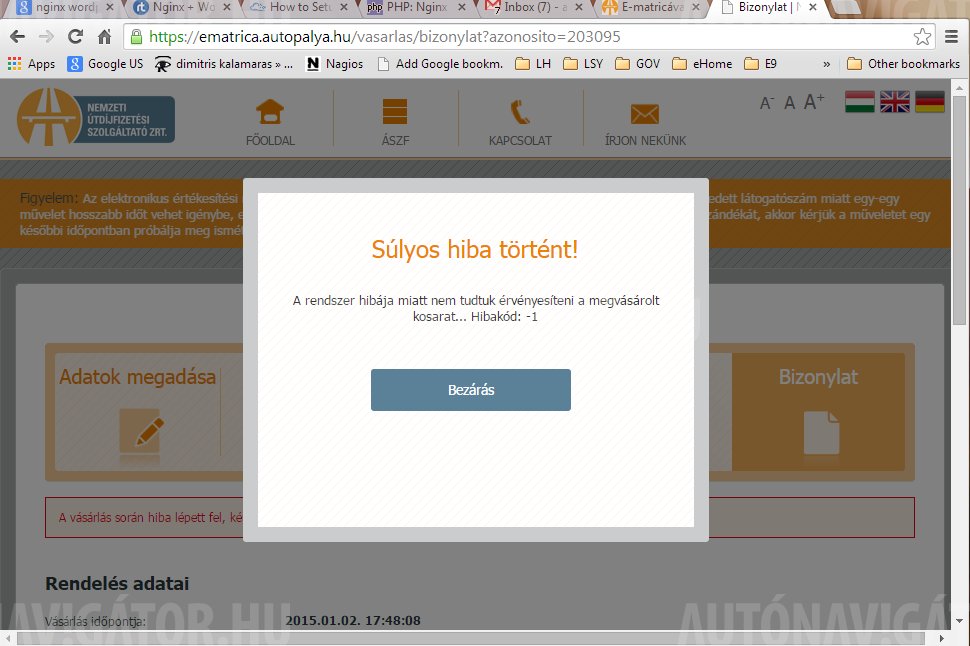 Nem csak olvasónknál, számos ismerősnél sem ment még tegnap sem az online matricavásárlás. A "Súlyos hiba történt!" és "A rendszer hibája miatt..." hibaüzenetek gyönyörűek a NÚSZ weboldalán
