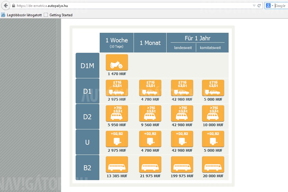 „D2 kategóriába tartozom, mert 8 személyes szgk-m van. Az éves az egyetlen ésszerű megoldás, ott nincs dupla díj (egyelőre). Ma közlekednem kell autópályán, gondoltam a legilletékesebb helyen megveszem, interneten a Nemzeti Útdíjfizetési Szolgáltató Zrt-nél. A honlap tanúsága szerint a rendszer hibátlan, de azért akinek nem muszáj, ne vegyen ma matricát. Nekem muszáj volt, de nem sikerült, 8 esetből 8-szor kivágott, 2 hiba felváltva jelentkezett.