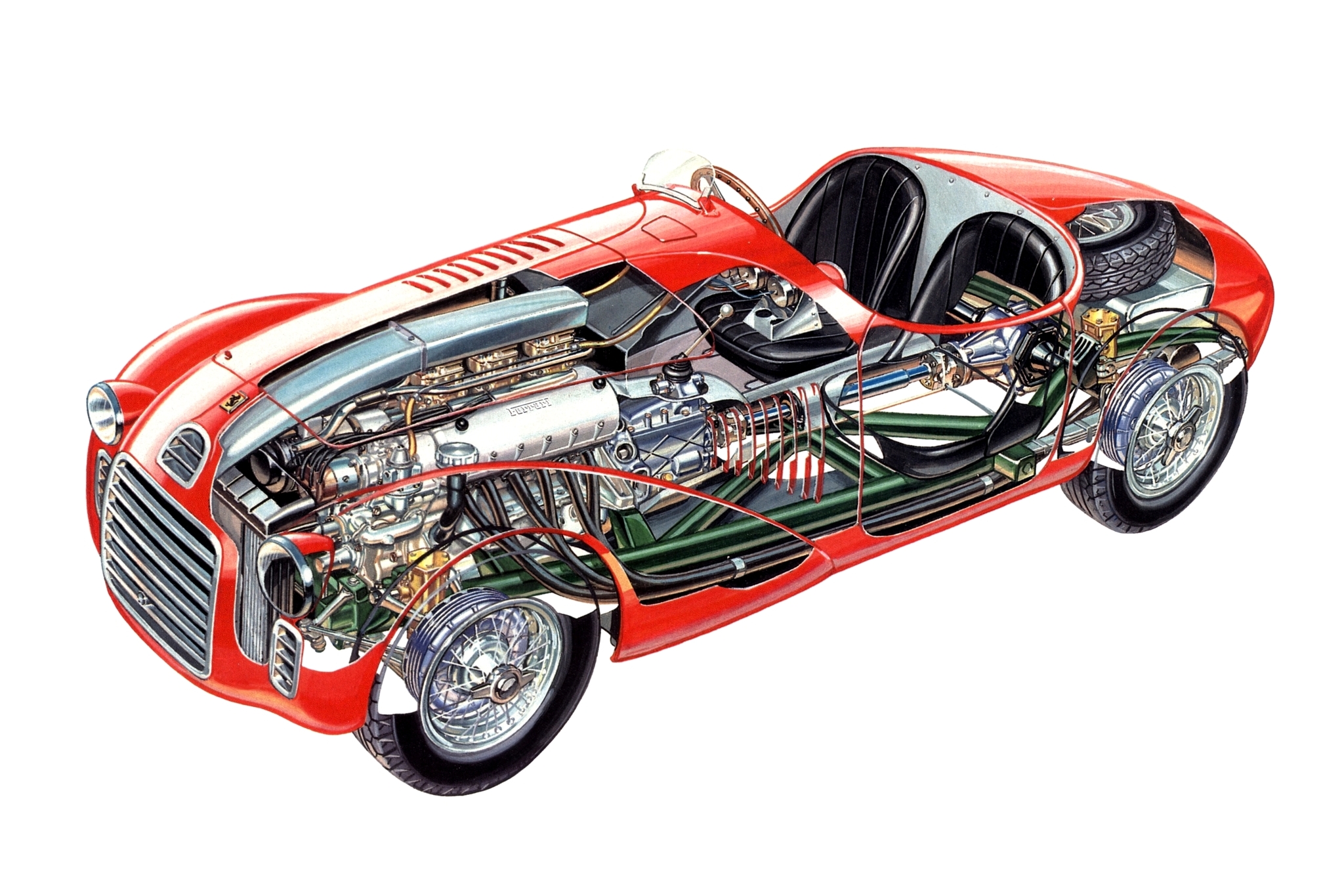 Az első Ferrari versenyautók a második világháború után készültek el. A V12-es blokk a 125S orrában csupán 1,5 literes volt