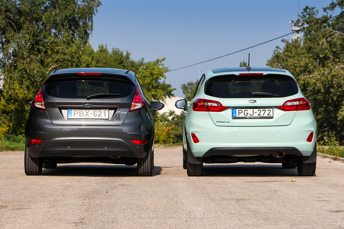 Használt tesztalanyunk sajnos az alapnak számító Trend, vagy ahogy ma hívnák, Trend Technology felszereltségű, az új tesztautó viszont már a csúcs, Titanium Technology szinttel büszkélkedhet, így ellátmányukban komoly eltérés van, persze utóbbi javára. Ahogy motorikusan sem összevethetőek, hiszen az új Fiestában a leggyengébb EcoBoost motor dolgozik, 100 pacival, míg elődjében az a 82 lovas, 1.25 szívóbenzines, amit mára a friss 1,1 literes váltott. Koncentráljunk tehát a karakterekre és persze a külső és belső változásokra, akár színben, akár anyagban, akár méretben. Részletesen már úgyis kiveséztük az új modellt.
