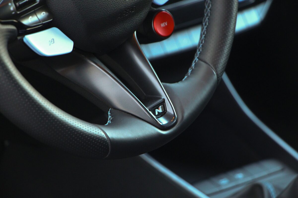Mint már említettem, üzemmódválasztó is található benne, ami Eco, Normal Sport és N fokozatot kínál, utóbbiból kettőt is, amelyek testreszabhatók. Az Ecót inkább hagyjuk, a Normal az tényleg normális, a Sport pedig tényleg sport, a lényeg viszont az N, ahol egyedileg beállítható a kormányzás, a menetstabilizáló, a kipufogóhang, illetve a fordulatszám-vezérlés. Mindent a legdurvábbra állítva már-már versenyautóvá válik a gép. A kipufogó röfög, hörög, szörcsög, gázelvételkor durrog, a piros REV gombbal pedig beállítható, hogy visszaváltáskor apró gázfröcssökkel horkanjon fel a motor.