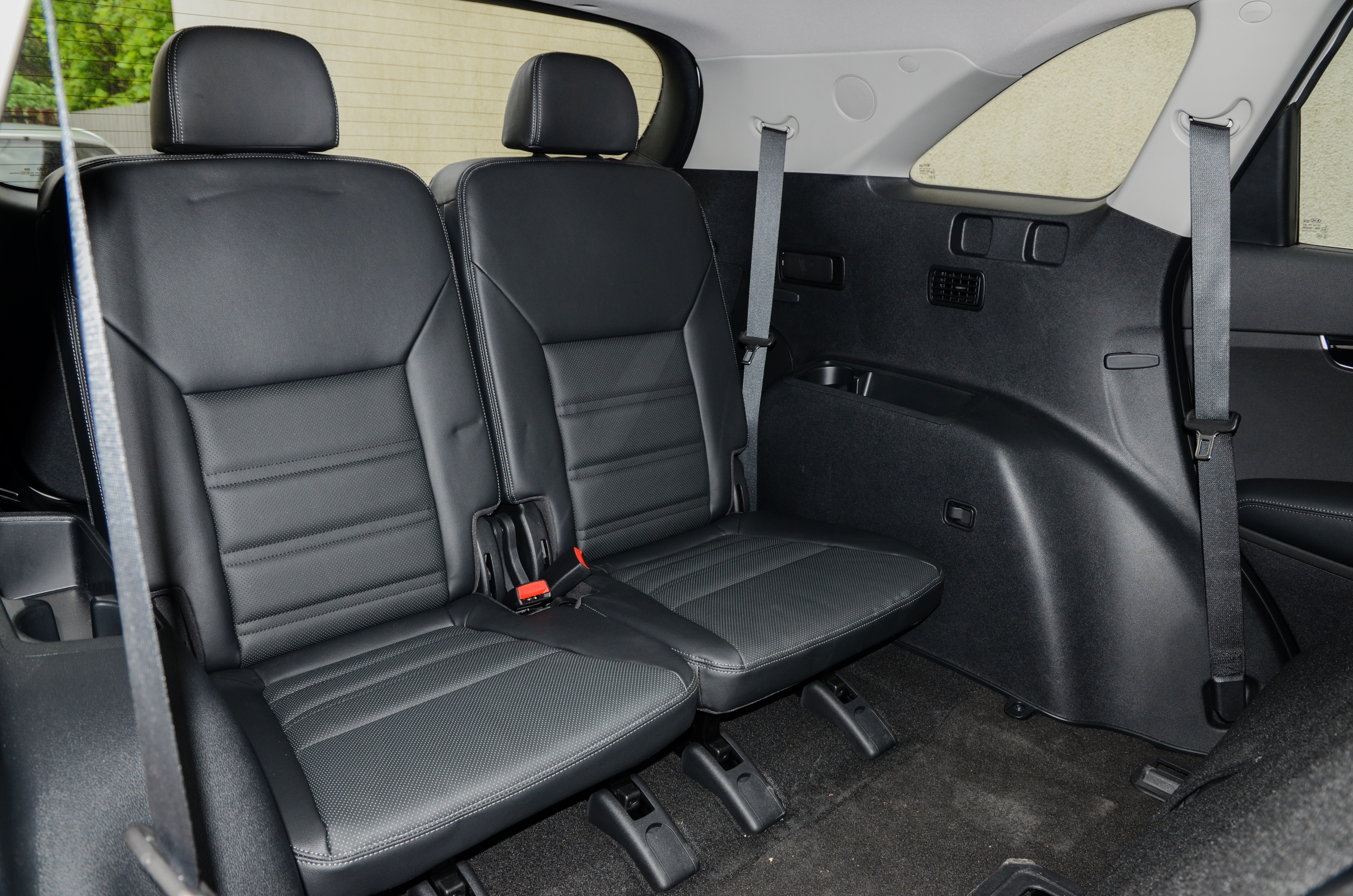 Hátrafelé szűkül. A harmadik üléssorba a beszállás eléggé nehézkes, de miután beültünk, azt érezhetjük, hogy nem is olyan kicsi a hely, mint amire eleinte számítottunk. Két oldalt egy-egy nagyobb tárolórekesz áll rendelkezésre, amelyen kényelmesen lehet akár könyökölni is, emellett pedig szellőzőnyílások, továbbá hőfokszabályzó is helyet kapott. 180 centis magasságommal a fenekemet kicsit előre tolva egész jól elfértem, a fejtér mellett kellő hely maradt a lábamnak is, hála annak, hogy a második üléssor háttámláinak dőlésszöge szabályozható.