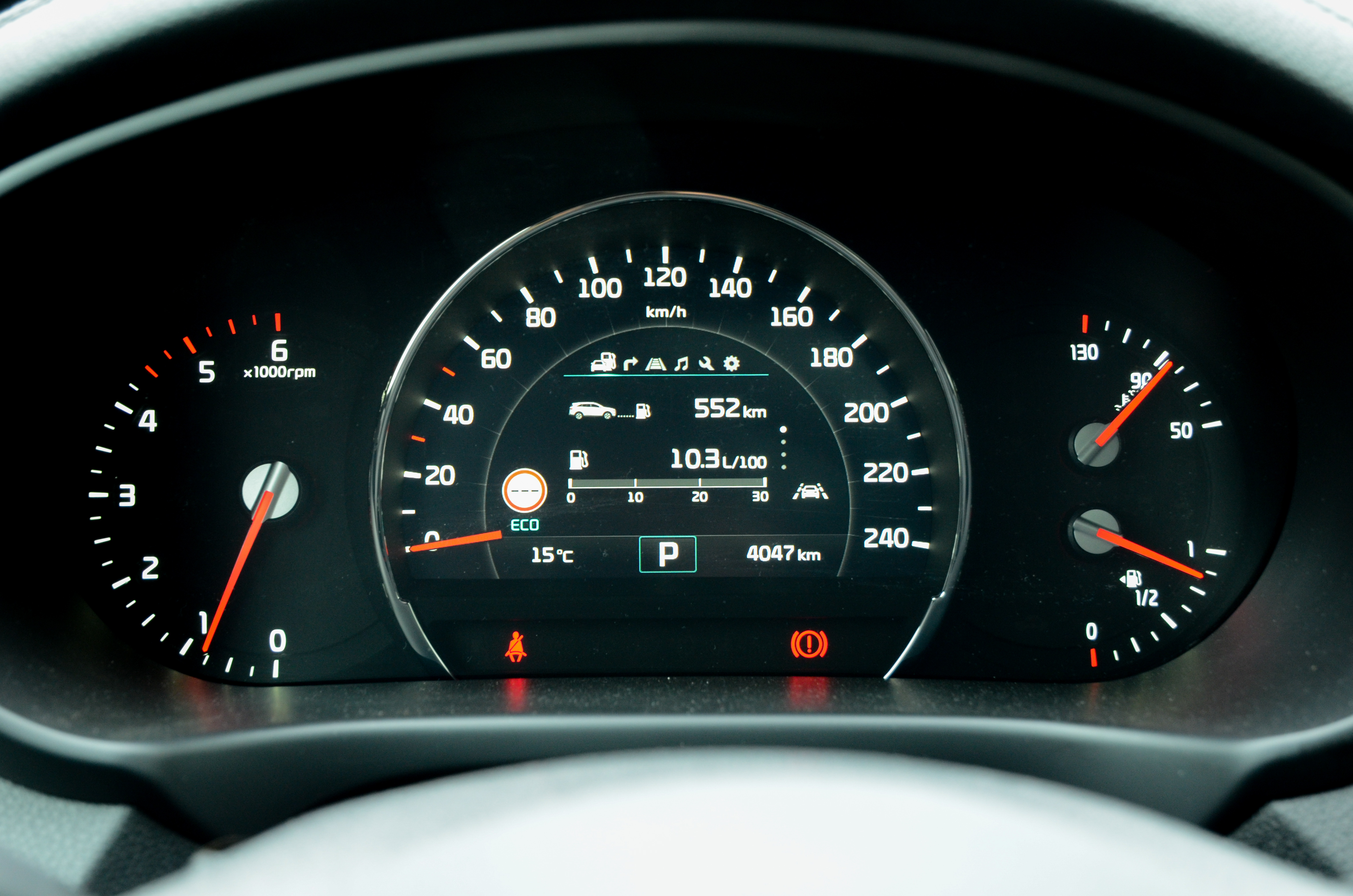 Van még min faragni. Ennyi helykínálat, extra és pozitív tapasztalat után azt gondoltam, hogy nem lesz gyenge pontja a Kia zászlóshajójának. Ez nagy szó lenne, hiszen még a német prémium SUV-oknál is találni egy-két hátulütőt. Ennél az autónál két dolog volt, amin még lenne mit tökéletesíteni. Az egyik egy kényelmet adó extra, ami a rossz működése miatt nem sokat ér. Az auto hold funkció az automata váltókkal szerelt járgányok jellegzetessége, amely abban segít, ha megállunk egy lámpánál, akkor ne kelljen folyamatosan a féket taposni, magától megakadályozza, hogy elinduljon az autó. Ez itt is működik, ugyanakkor a motort leállító és újraindító start/stop ebben az esetben működésképtelen, hiszen ő azt érzékelte, hogy leszálltam a fékről, tehát lehet a motort indítani. Ennek eredményeképpen vagy auto hold van és pöfög a motor álló helyben, vagy nyomjuk a féket és áll a motor, de akkor meg mi értelme az auto holdnak? Azt gondolom, hogy ezt egy szoftverfrissítéssel orvosolni lehetne, remélhetőleg minél hamarabb megoldják majd ezt a kellemetlenséget. A másik, kevésbé kényelmes extra a nagyméretű középső kijelző kezelése. Egyáltalán nincs megdöntve a vezető felé, ami még nem is lenne olyan nagy gond, de egy telefonszám kikeresése menet közben már komoly odafigyelést kíván. Az érintőképernyő mellett jó lett volna egy nyomkodható vagy tekergethető gomb a váltó mellé amellyel sokkal gördülékenyebben és biztonságosabban lehetne kezelni a rendszert - a modellfrissítéssel majd ez is megérkezhet.