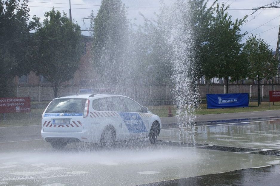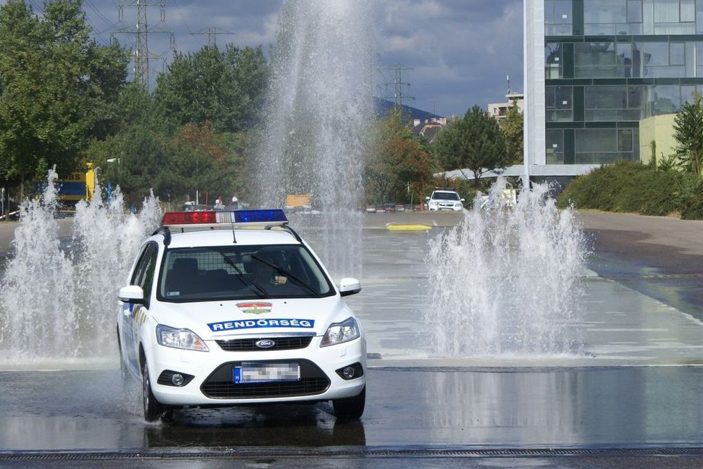 Vezetés vízfüggönyben, kitérő bukkanó után, mind komoly koncentrációt és jó reakcióidőt igényel. A legjobb fővárosi rendőr az országos döntőben képviselheti a fővárosiakat