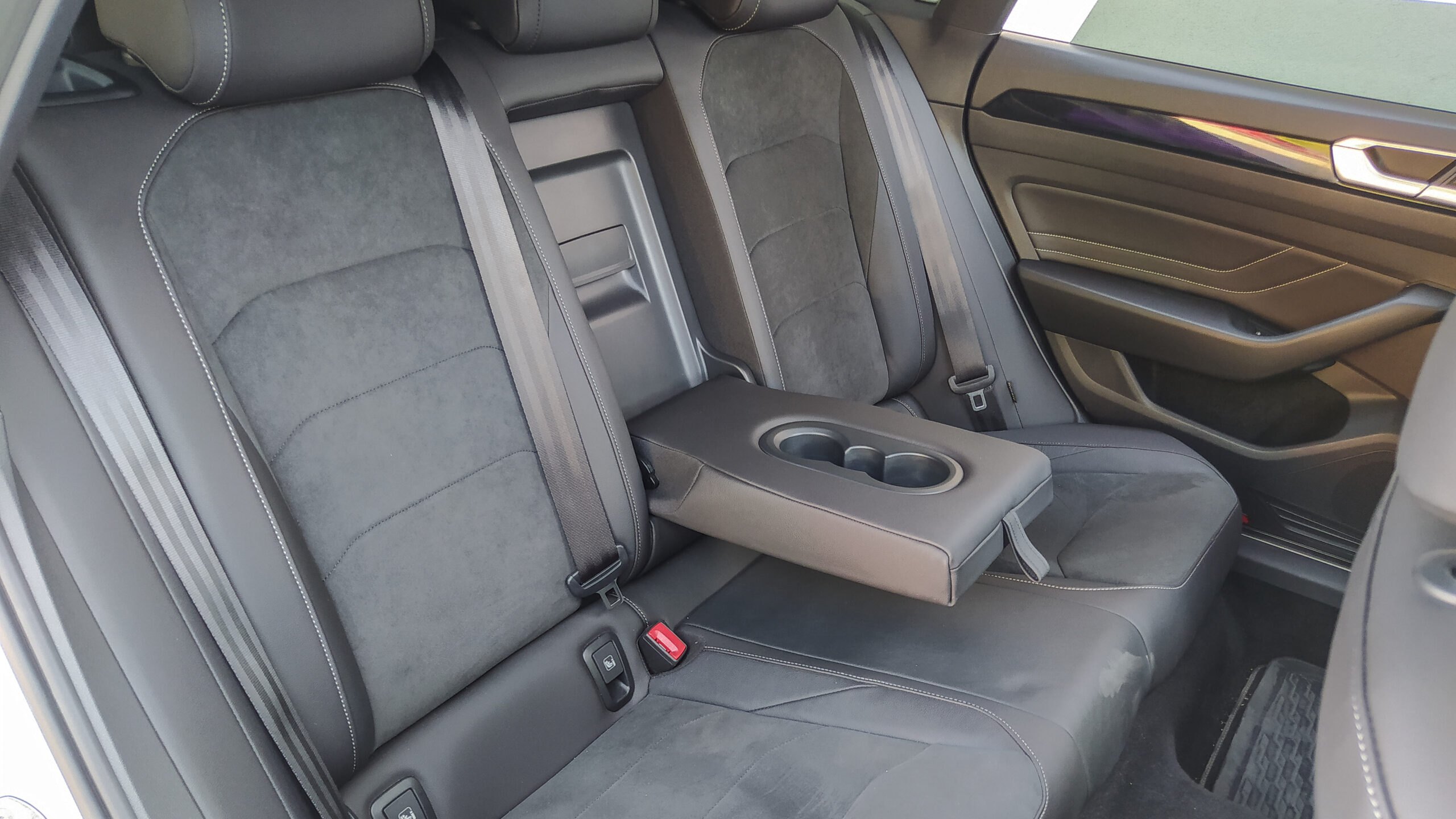 Elöl hatalmas és kényelmes, a formavilágot és az ergonómiát is a német precizitás uralja, egyedül abba tudok belekötni, hogy 15 millió forint felett - álsportos R-Line csomag ide vagy oda - ne csak az ülés háttámlája legyen elektromos, hanem az alja is. Hátul körülbelül ugyanazt a kényelmet kapjuk, fejedelmi lábtérrel. Még a variálható színű hangulatvilágításból is jutott a hátsó ajtókárpitokra. A csomagtartója is hatalmas: 575 litere kereken tízzel több az A6 azonos adatánál, de a Passat puttonyától 85 literrel elmarad. Ledöntve a padlója nem sík, helykínálatának pedig az alacsony tetővonal szab korlátokat. Futóműve mindkét sorban egyaránt volkswagenesen feszesnek hat, vezetés közben ennek előnyét is érezni egy billegősebb, de kényelmesebb megoldáshoz képest. Az Arteon ugyanis nem csak feszes, de alacsony, széles és nehéz is, ezért nagyon nehéz kimozdítani a komfortzónájából.