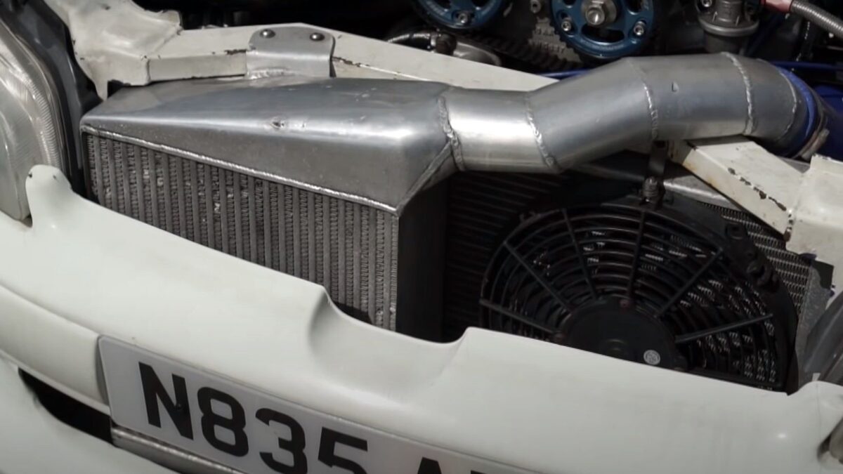 Zárt gépháztetővel megbújik, azt felnyitva azonban üvöltő eltérés az utólagos hűtő is (Fotó: YouTube/Motor Addicts)