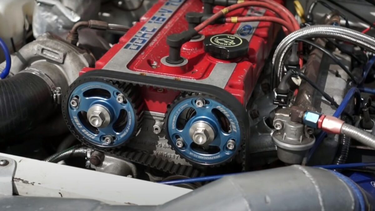 Hosszában beépítve került a motortérbe a Sierra RS Coswroth motorja, sőt a teljes összkerékhajtása is megérkezett a 106-ba (Fotó: YouTube/Motor Addicts)