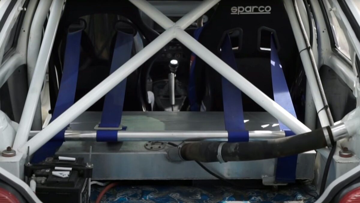 A teljesítmény mellé karosszériamerevítés is jutott bőven a 106-ba (Fotó: YouTube/Motor Addicts)