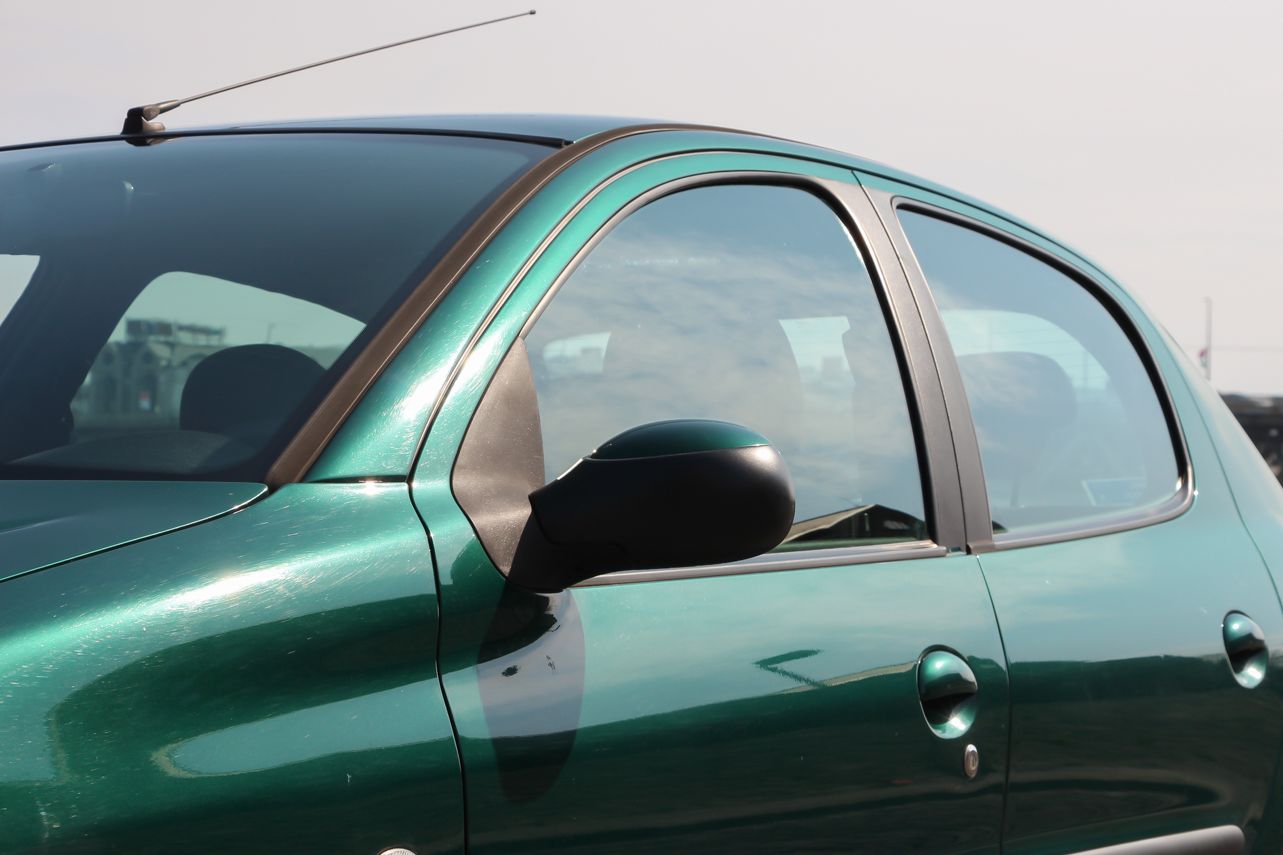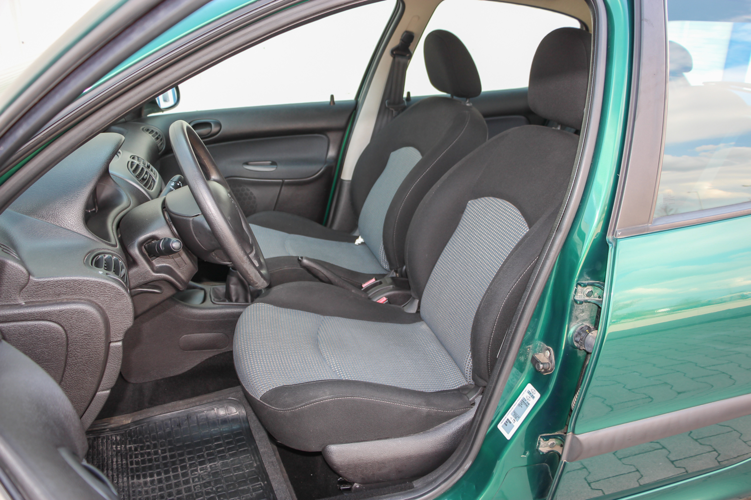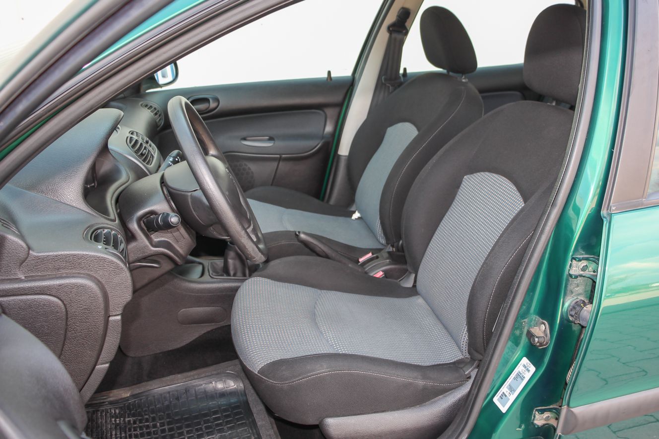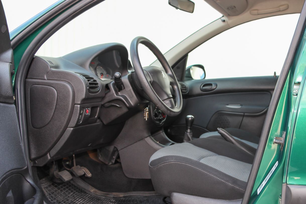 A képeken látható zöld autó forgalmija szerint 2004 év eleji, de korábban gyártották, mert még nem a sima fényszóróburás, módosított hátsó lámpás verzió. Ettől függetlenül épp annyira új, hogy a típus hírén sokat rontó komolyabb gondok nem gyötrik. Soha egy csepp olaj nem folyt belőle, nem voltak futóműgondjai, de hogy is lettek volna alig 38 ezer eddig lefutott kilométer alatt? A 206-os tulajdonosa valóban egy hölgy, jelen esetben ez nem csak egy nepperes szófordulat. Egy lestrapált Opel Corsa A, majd egy jobb, de beázó tetőablakos, szintén használtan, második autónak vett Renault Clio után kapta az autót karácsonyra. Mindegy volt, milyen autó, csak zöld színű legyen, így lett ez az akkor még nagyon divatos 206 a család második autója. A trendiséget meg kell fizetni, ezt az újkori ára is tükrözte, nem volt a legolcsóbb választás 2,5 millió forintért. A kipróbált példány a közepes Presence felszereltségű. Ehhez akkoriban két villanyablak és két légzsák járt. A gyönyörű árnyalatú metálzöld szín feláras volt, és tulajdonosai súlyos pluszpénzt fizettek az 1.4-es motorért is, ami helyett én inkább a klímát és a csomagban kapható oldallégzsák+ABS kombót vettem volna meg. Mert igaz, hogy az 1.4-es, Euro 3-as besorolású benzines a maga 75 lóerejével ma is jól viszi a 950 kilós autót, de klíma nélkül a fekete utastér és a nagy műanyagfelületek nagyon hamar felmelegednek a méretes első szélvédő alatt.
