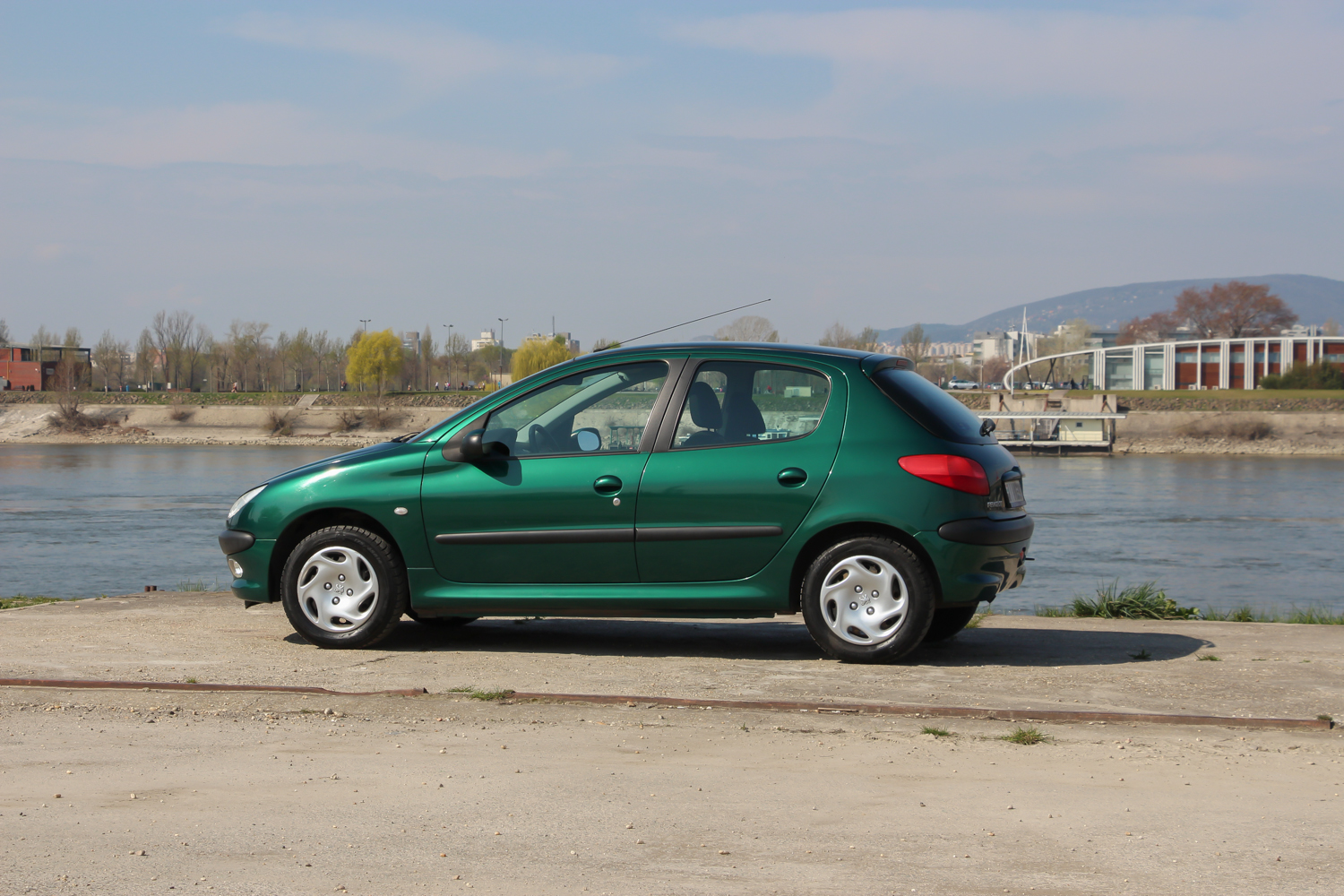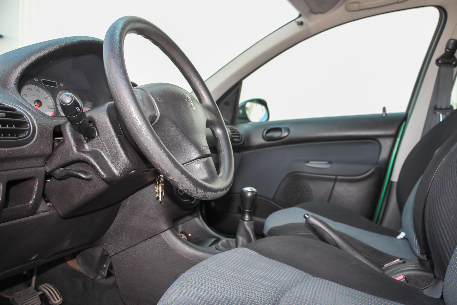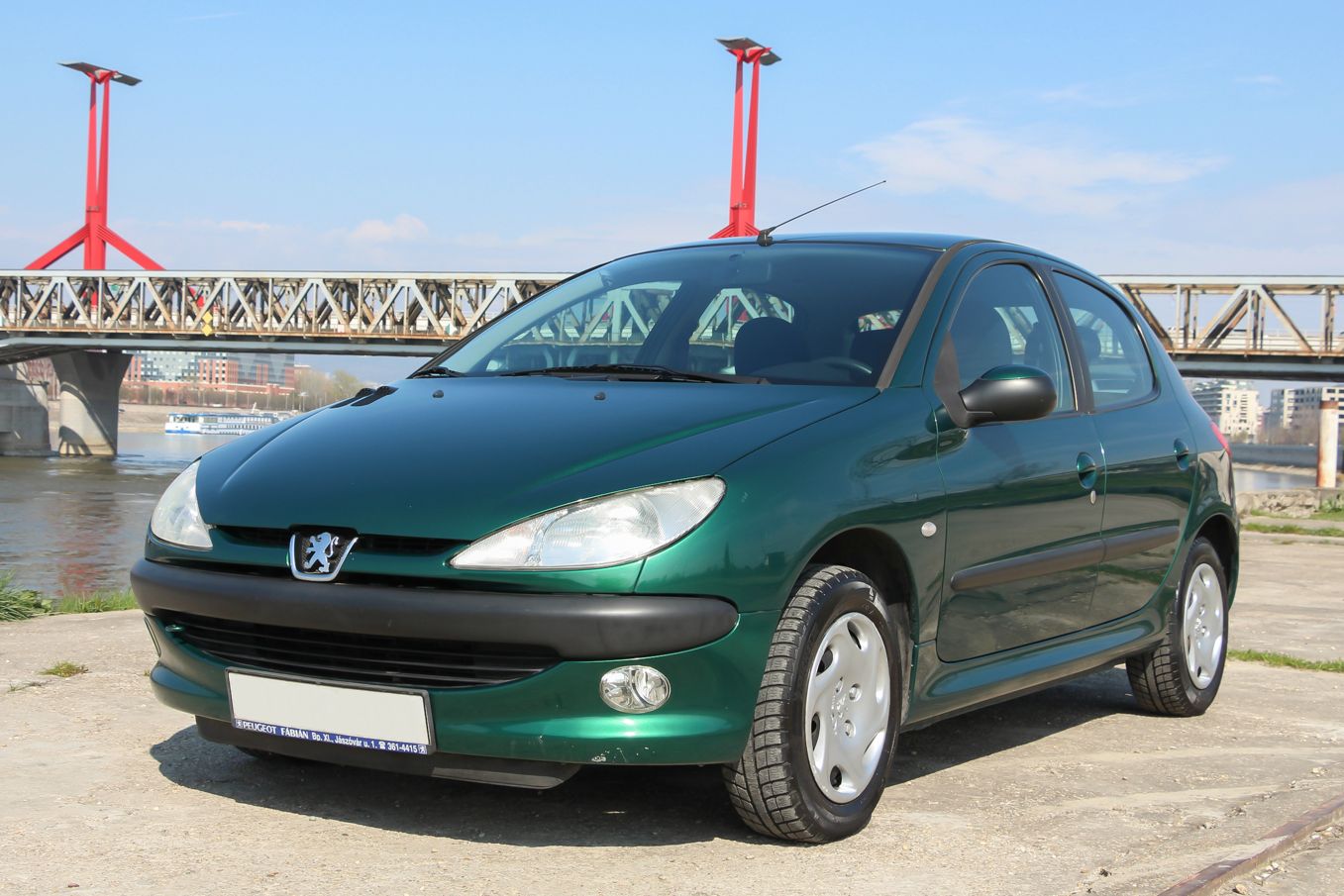 A képeken látható zöld autó forgalmija szerint 2004 év eleji, de korábban gyártották, mert még nem a sima fényszóróburás, módosított hátsó lámpás verzió. Ettől függetlenül épp annyira új, hogy a típus hírén sokat rontó komolyabb gondok nem gyötrik. Soha egy csepp olaj nem folyt belőle, nem voltak futóműgondjai, de hogy is lettek volna alig 38 ezer eddig lefutott kilométer alatt? A 206-os tulajdonosa valóban egy hölgy, jelen esetben ez nem csak egy nepperes szófordulat. Egy lestrapált Opel Corsa A, majd egy jobb, de beázó tetőablakos, szintén használtan, második autónak vett Renault Clio után kapta az autót karácsonyra. Mindegy volt, milyen autó, csak zöld színű legyen, így lett ez az akkor még nagyon divatos 206 a család második autója. A trendiséget meg kell fizetni, ezt az újkori ára is tükrözte, nem volt a legolcsóbb választás 2,5 millió forintért. A kipróbált példány a közepes Presence felszereltségű. Ehhez akkoriban két villanyablak és két légzsák járt. A gyönyörű árnyalatú metálzöld szín feláras volt, és tulajdonosai súlyos pluszpénzt fizettek az 1.4-es motorért is, ami helyett én inkább a klímát és a csomagban kapható oldallégzsák+ABS kombót vettem volna meg. Mert igaz, hogy az 1.4-es, Euro 3-as besorolású benzines a maga 75 lóerejével ma is jól viszi a 950 kilós autót, de klíma nélkül a fekete utastér és a nagy műanyagfelületek nagyon hamar felmelegednek a méretes első szélvédő alatt.