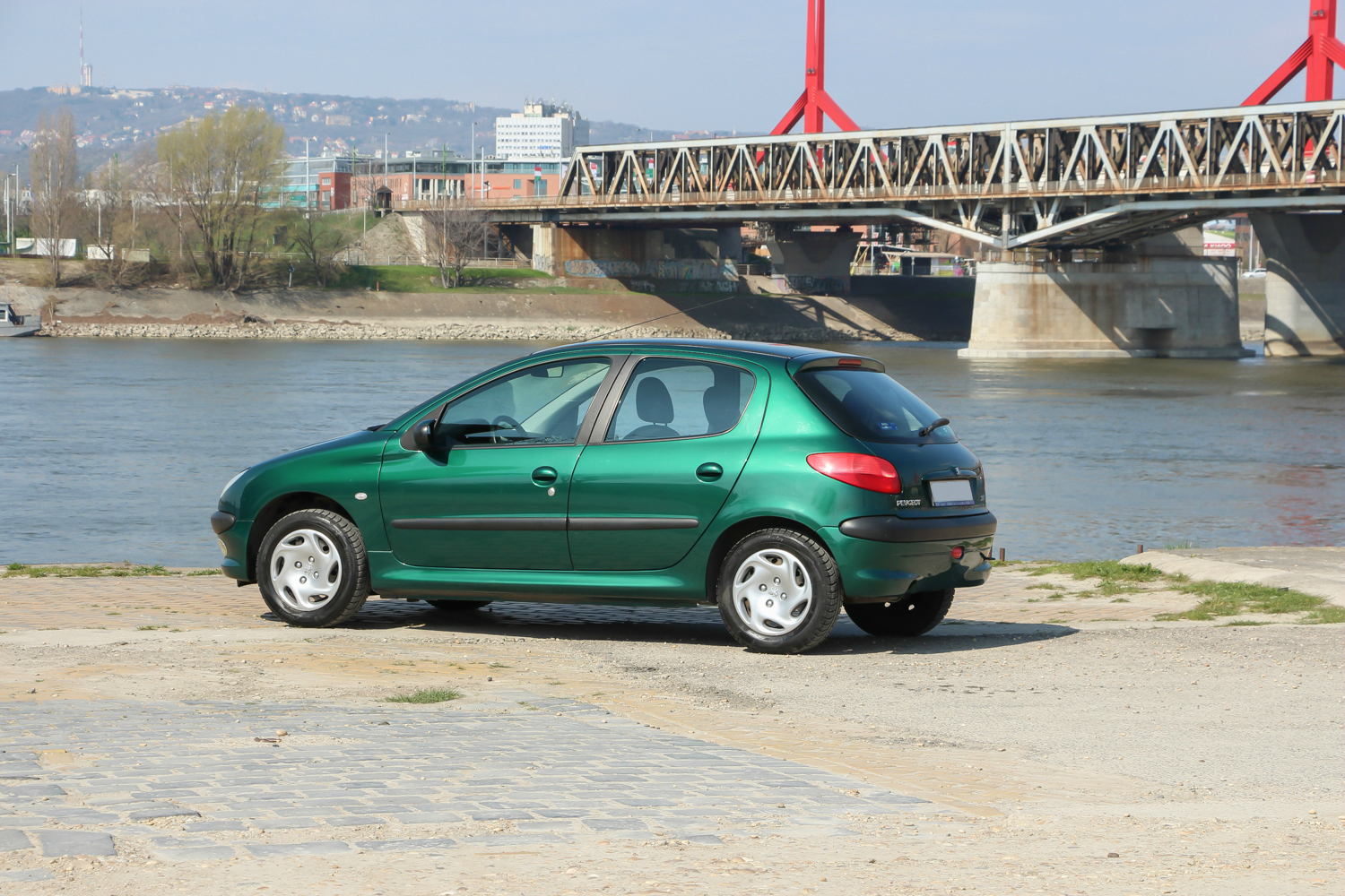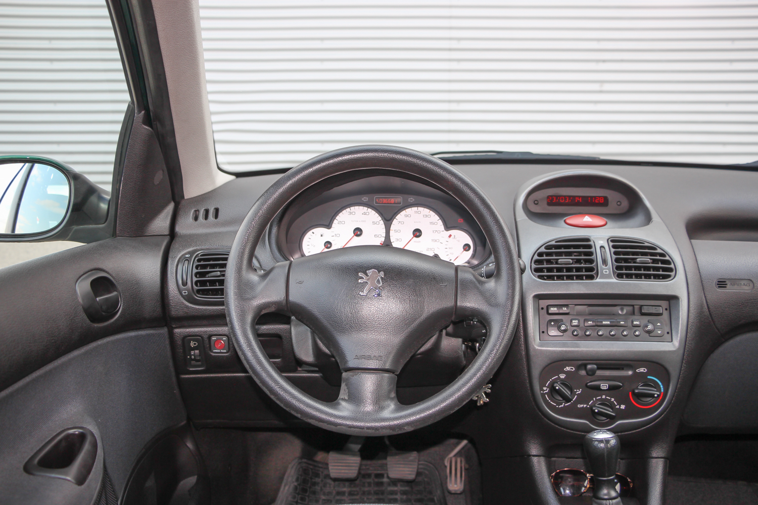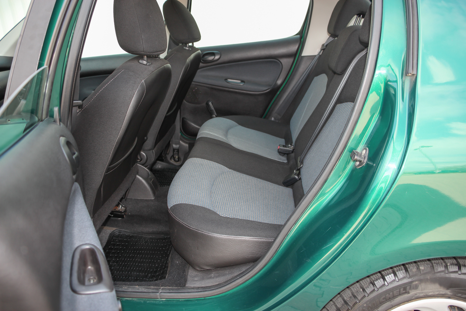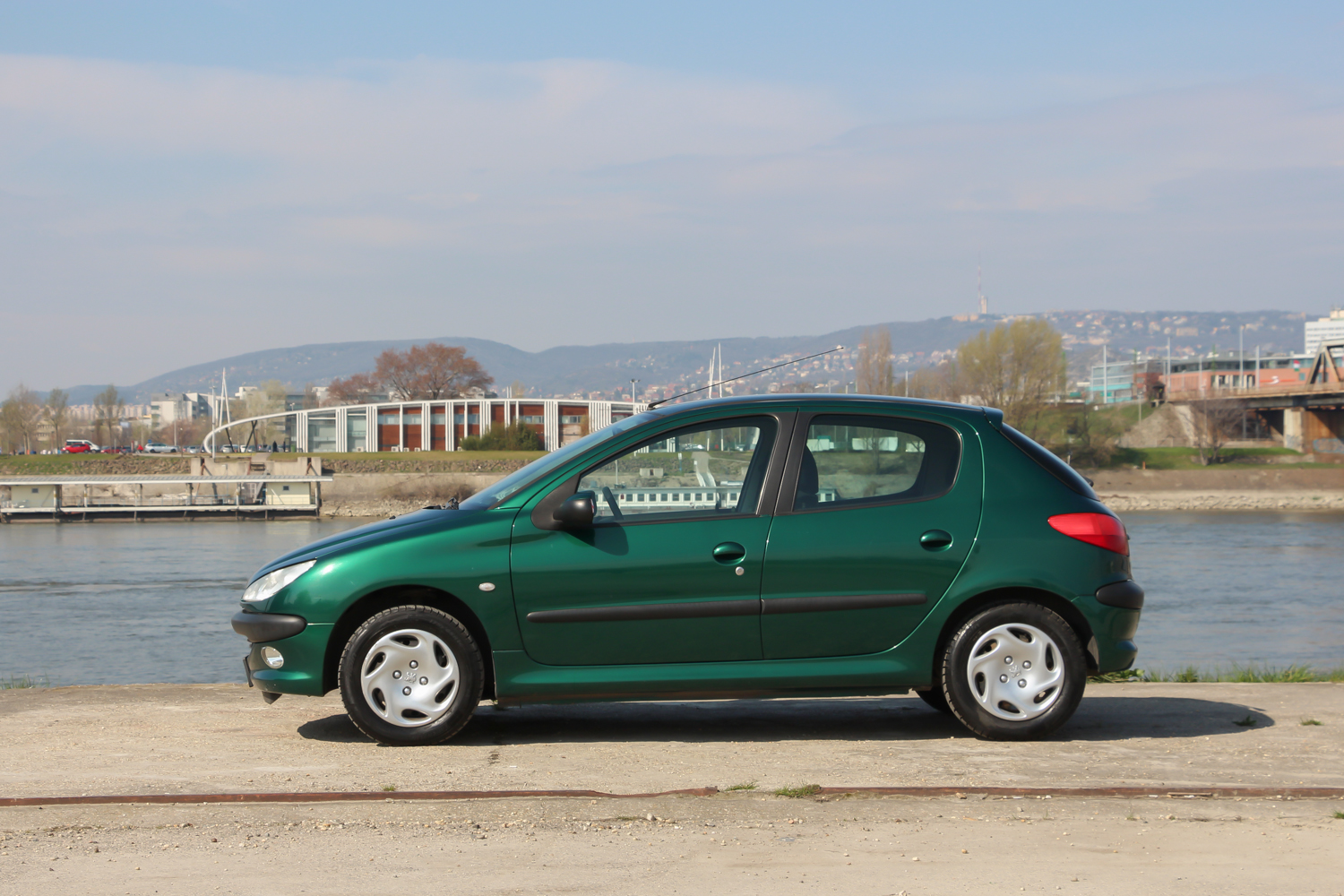 A képeken látható zöld autó forgalmija szerint 2004 év eleji, de korábban gyártották, mert még nem a sima fényszóróburás, módosított hátsó lámpás verzió. Ettől függetlenül épp annyira új, hogy a típus hírén sokat rontó komolyabb gondok nem gyötrik. Soha egy csepp olaj nem folyt belőle, nem voltak futóműgondjai, de hogy is lettek volna alig 38 ezer eddig lefutott kilométer alatt? A 206-os tulajdonosa valóban egy hölgy, jelen esetben ez nem csak egy nepperes szófordulat. Egy lestrapált Opel Corsa A, majd egy jobb, de beázó tetőablakos, szintén használtan, második autónak vett Renault Clio után kapta az autót karácsonyra. Mindegy volt, milyen autó, csak zöld színű legyen, így lett ez az akkor még nagyon divatos 206 a család második autója. A trendiséget meg kell fizetni, ezt az újkori ára is tükrözte, nem volt a legolcsóbb választás 2,5 millió forintért. A kipróbált példány a közepes Presence felszereltségű. Ehhez akkoriban két villanyablak és két légzsák járt. A gyönyörű árnyalatú metálzöld szín feláras volt, és tulajdonosai súlyos pluszpénzt fizettek az 1.4-es motorért is, ami helyett én inkább a klímát és a csomagban kapható oldallégzsák+ABS kombót vettem volna meg. Mert igaz, hogy az 1.4-es, Euro 3-as besorolású benzines a maga 75 lóerejével ma is jól viszi a 950 kilós autót, de klíma nélkül a fekete utastér és a nagy műanyagfelületek nagyon hamar felmelegednek a méretes első szélvédő alatt.