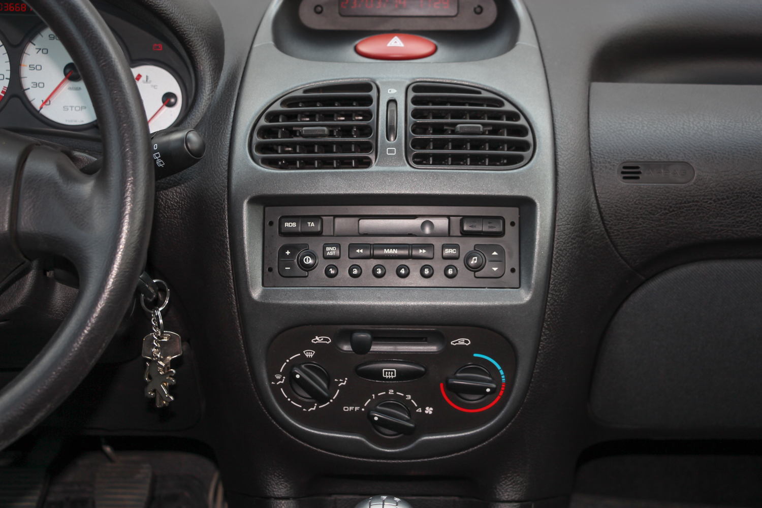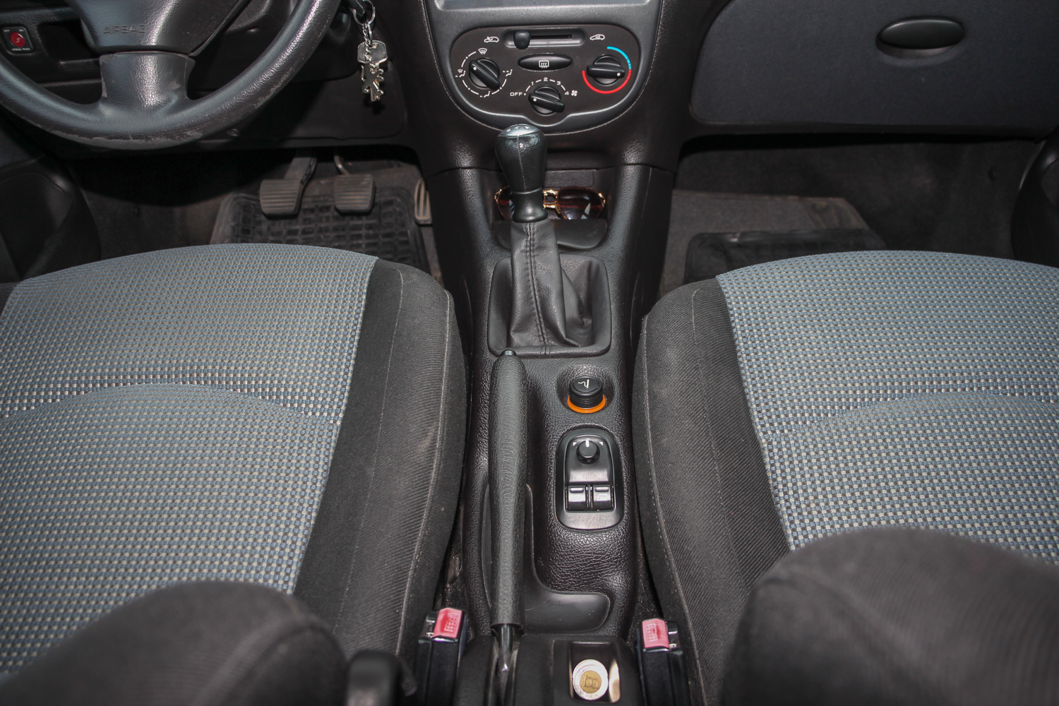 Beülve semmi meglepőt nem találunk, ez a korábbi Peugeot-egyenbelső némi kis plusz kerekséggel á la 206. Újkorában a tesztelők kritizálták az amúgy állítható magasságú kormány szögét és az üléspozíciót is. Nekem egy kicsit túl magasnak tűnt, pedig általában szeretek magasan ülni, és összességében egy picit fura volt, de egy percig sem kényelmetlen. Az ülések, bár kicsi az ülőlapjuk és a hátfelületük is, adnak némi oldaltartást, és a tömésük is megfelelően kemény, átlag testalkattal kényelmesek. A beltérben két kellemetlen dolog van csak: kicsit sok a bőrhatásúra recézett fekete műanyag felület és típushiba, hogy a plasztik kormány nagyon csúnyán hámlik még ezen a 38 ezret futott autón is. Ezen ront, hogy rendszeresen gyűrűben vezetik. Ezeket leszámítva nagyon kulturált, ma is rendben lévő a 206-os. Ja, és még egy ergonómiai baki: az elektromos ablak kapcsolóit nem sikerült az ajtóra rakni, középen vannak a kézifék mellett. Így olcsók, mert - elvileg - a sofőr és az utas is eléri őket, nincsenek duplikálva. A beltéri szövet tartós és minőségi, az ülések hátulját borító műbőrt meg legalább könnyű megtisztítani a gyereklábnyomoktól. És ha már bemerészkedtünk a hátsó üléssorba, akkor hadd írjam le, hogy négy embernek hosszabb távon is kényelmes az utastér. Nyilván térdben limitált a férőhely, de 180 centivel nincs gond, és a fejtér is elég. A 206 pont annyira modern csak, hogy a hátulja nincs túlzottan lecsapva, de az oldalvonala annyit emelkedik, hogy a hátsó oldalablakok már eléggé kicsik.