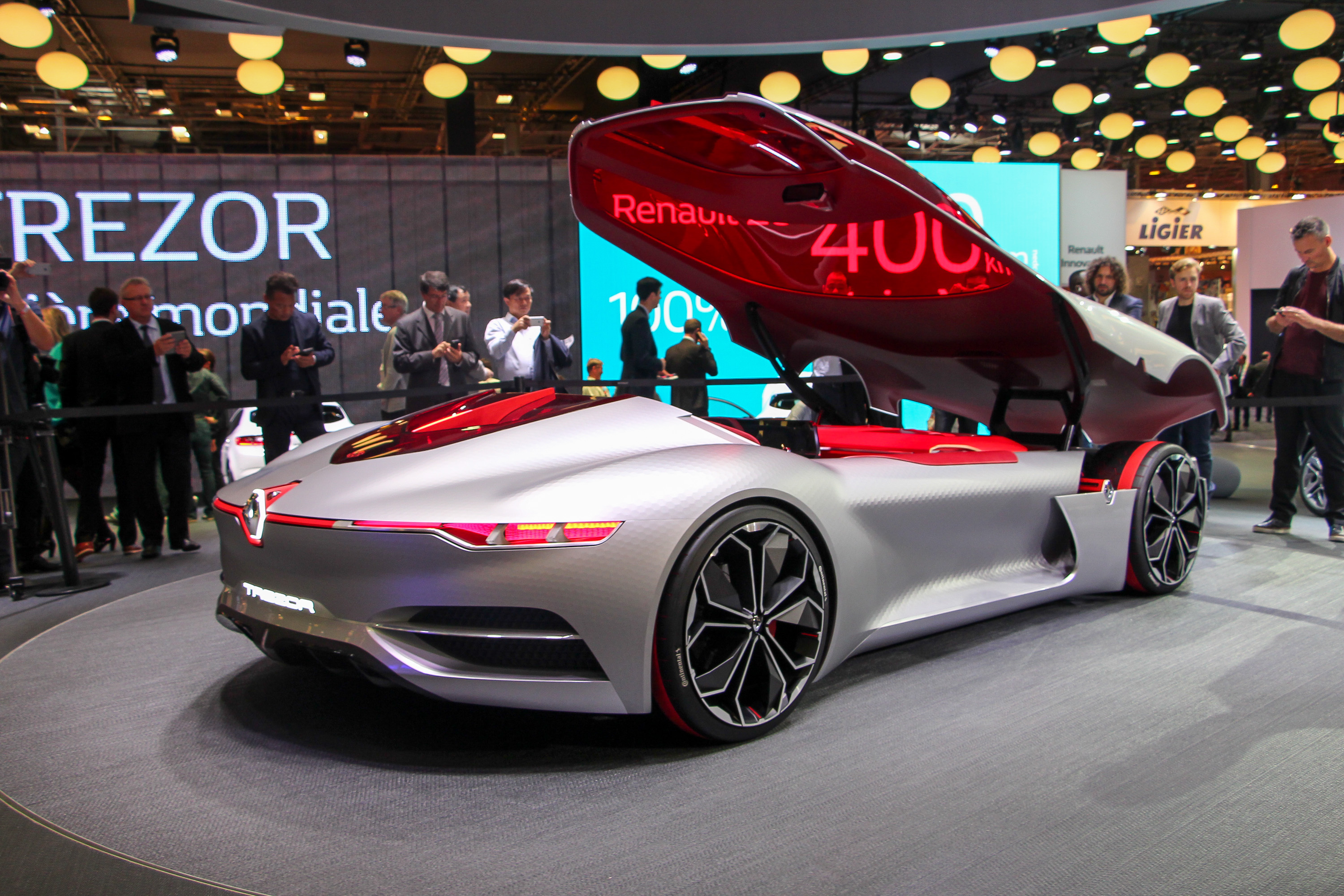 Fura név a Trezor, de legalább könnyen megjegyezhető, a Párizsi Autószalon talán legszebb gépe a Renault tanulmánya. Hatalmas, 4,7 méter hosszú, közben meg alig magasabb 1 méternél, természetesen önvezető módra is képes, már ahogy azt a márkánál elképzelik