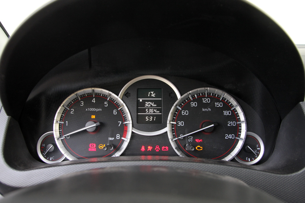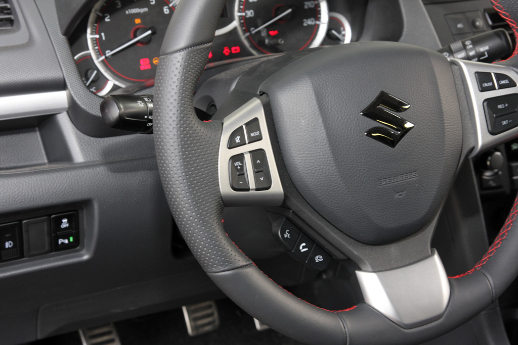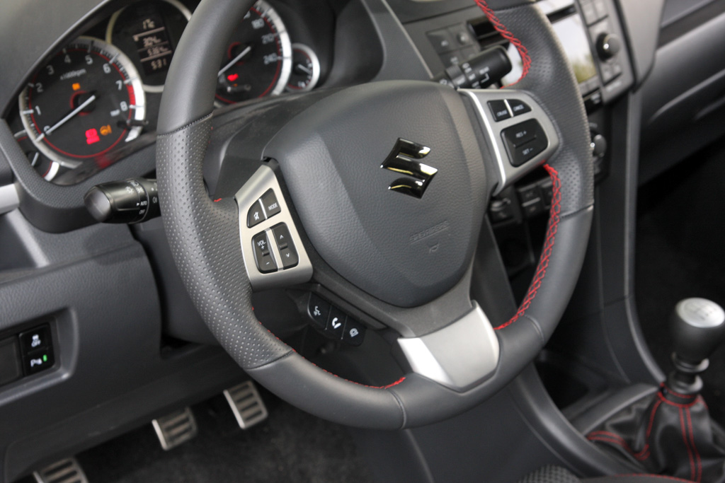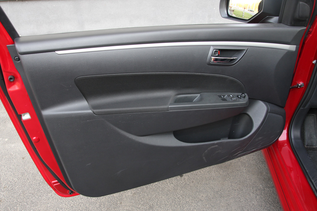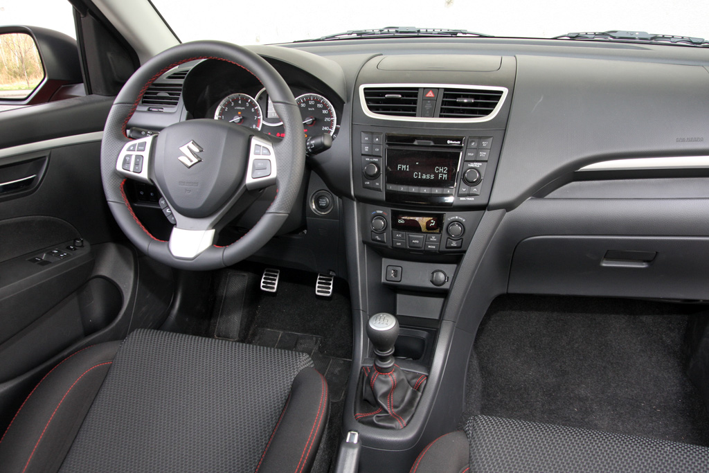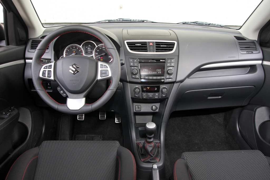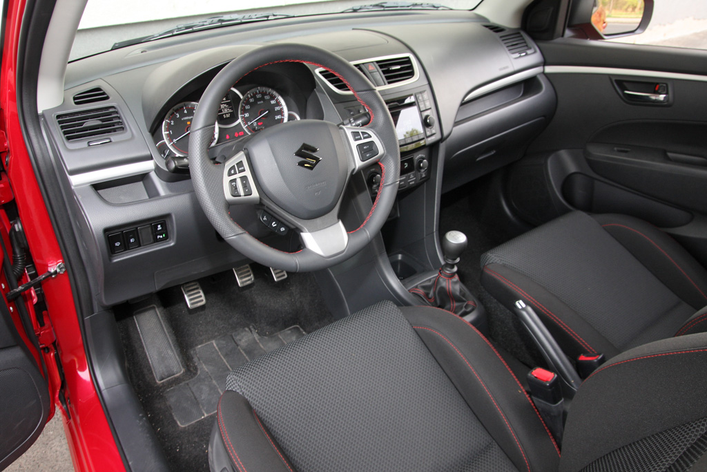 Komor, de a korábbi Swiftekhez viszonyítva és a kategóriában is minőségi, korrekt ez a beltér. A műszerfal egyszerű, a kilométeróra 30-as tagolása fura