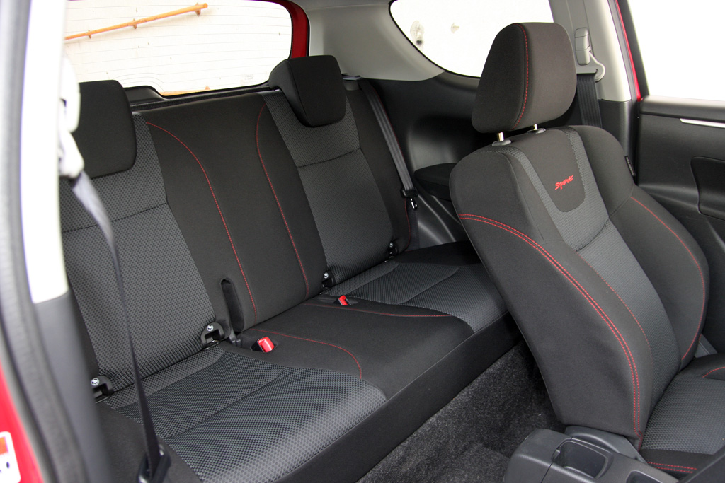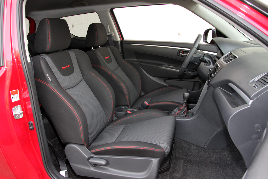 Elöl jó oldaltartású, kényelmes, elég mélyre ugyanakkor nem engedhető az ülés, hátra viszont csak az másszon be, akinek muszáj. Legfeljebb ketten sanyargathatják magukat, mert amellett, hogy a Swift Sport ötajtósan nem kapható, ötszemélyesen sem