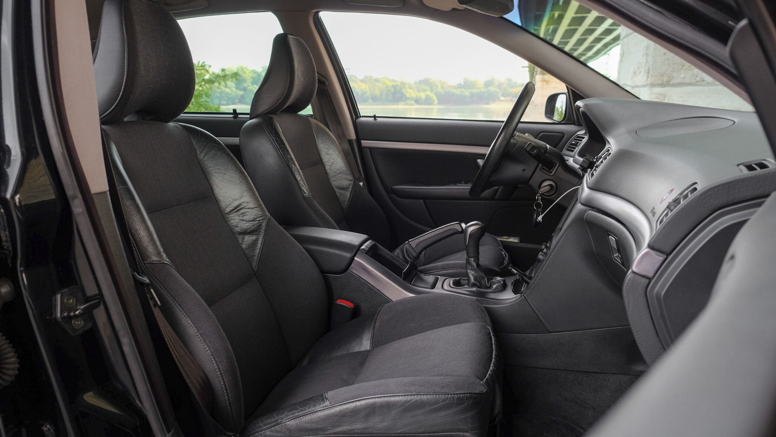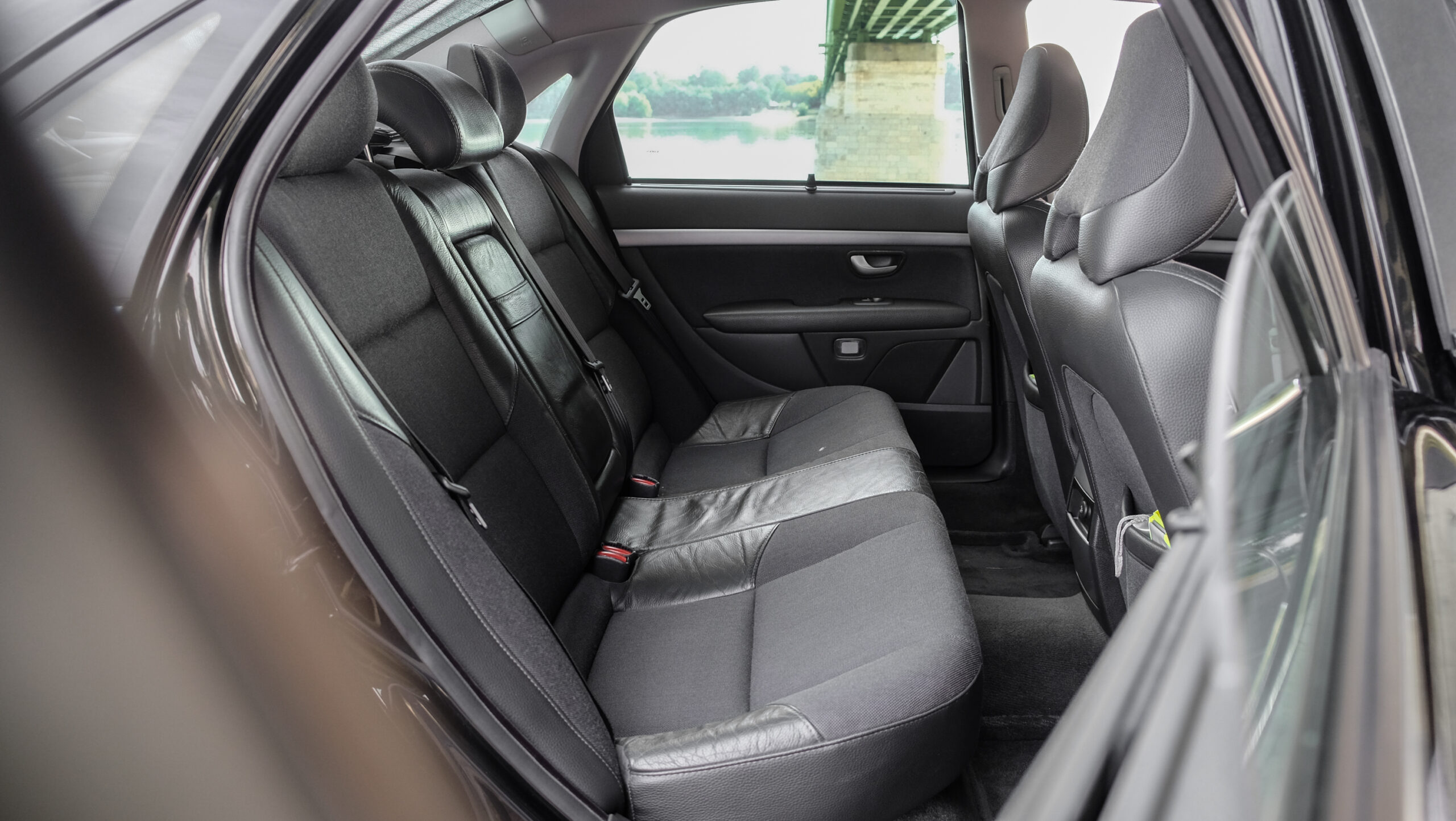 S60-ban, valamint a könyöklő nyitómechanizmusának elhalálozása, ez itt is megtörtént, bármennyire is vigyáztak rá és futott keveset korához képest. Ugyanaz zárja a könyöklő előtti rekeszt is, aminek a zsanérjai idővel eltörnek, az egy darabban beszerelt zárszerkezet pedig egyszerűen kiesik. Minden egyéb ponton jól tartja magát, a Volvókra jellemző vastag bőrkárpit itt is hibátlan, a szövet szintén és nagyon jól áll neki, hogy csak félbőr a kárpit, így hétköznap kényelmesebben használható.