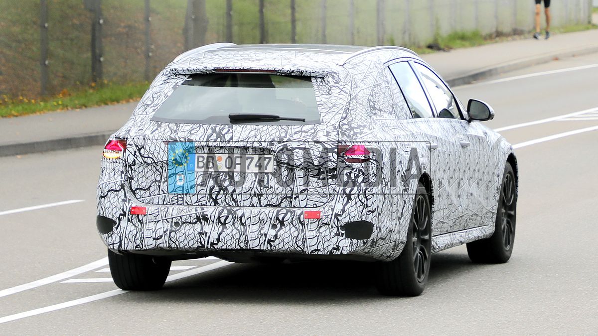 Hátul szintén nem kaptak túlzottan szabad kezet a tervezők, az eddigihez hasonlóan vízszintes elrendezésű lámpatesteket láthatunk majd, csak legfeljebb az enyhén szögletesből kicsit oválisabbá alakulnak. A leghátsó oldalablakoknál alaposan eltakarták az autó formáját a Mercedes-Benz munkatársai, a felső ablakvonal lejtése esetleg tartogathat újdonságot, vagy maradhat a jelenlegihez hasonló, konzervatív kialakítás. Erőforrások tekintetében azonban még elég keveset tudunk: már most is rengeteg lágy hibrid variáns érhető el, de a következő generációnál a konnektoros hibridek szaporodhatnak meg. További kérdés az AMG változatok meghajtása: jelenleg V8-as morog a sportkombi orrában, nem szerény 600 lóerővel. Jelenleg azonban fennáll az a kifejezetten kínos helyzet, hogy a kistestvér új C-osztály csúcsváltozata 680 lóerős. Kérdés, a nagytestvér visszaveszi-e majd erőfölényét, és ha igen, akkor ezt egy alaposan felizmosított V8-assal teszi, vagy esetleg a C-osztály négyhengeresét és villanymotorját húzzák még erősebbre.