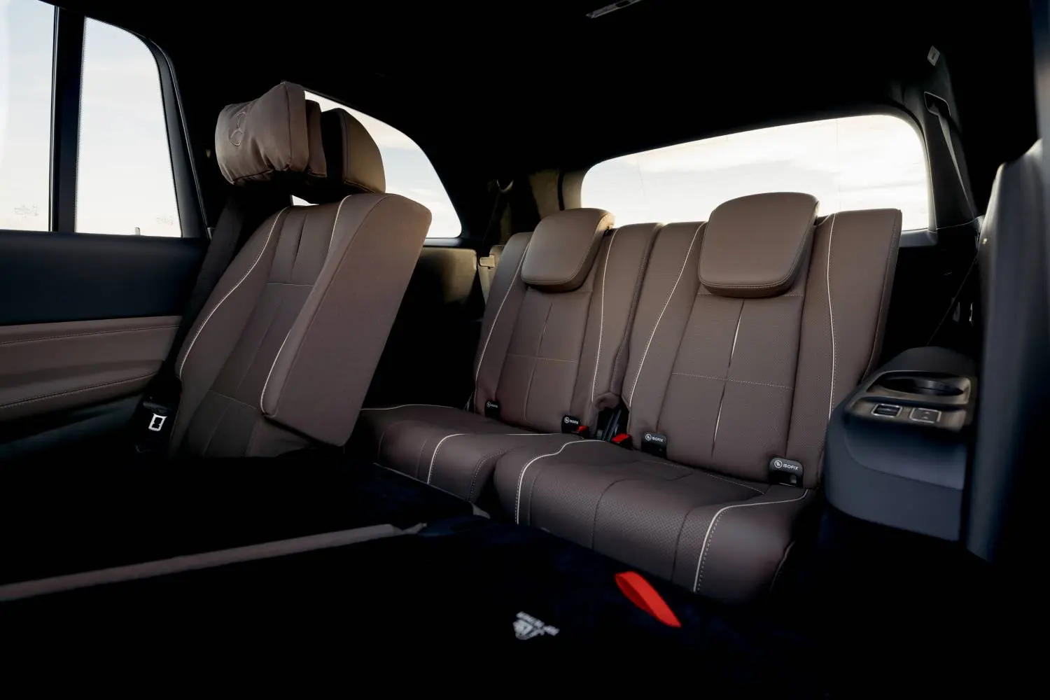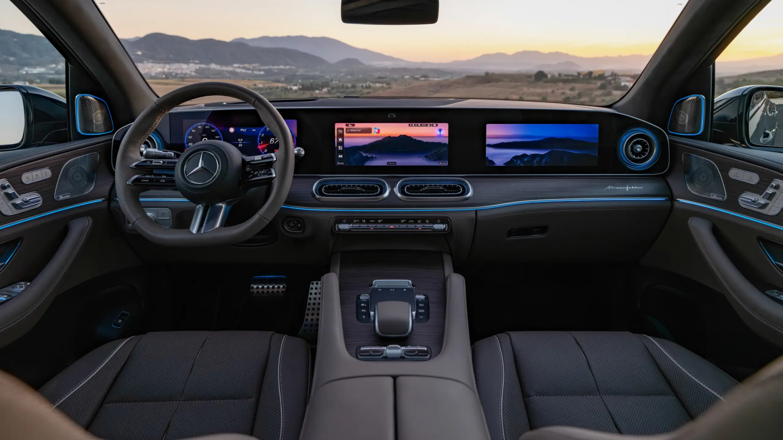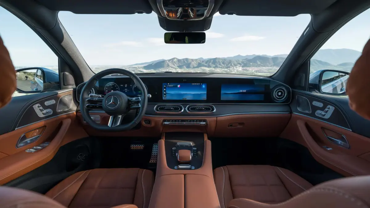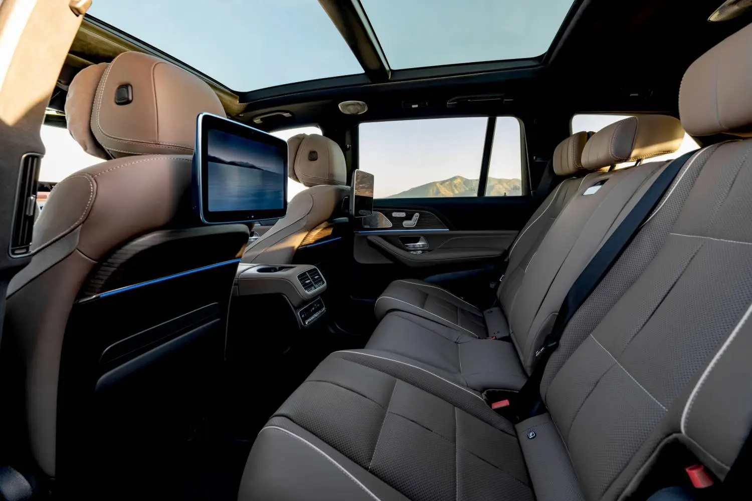 Az utastérben még látványosabb a változás, a hatalmas MBUX Superscreen mostantól alapfelszereltség a GLE és a GLS esetében is. Az összefüggő képernyőfelület három 12,3 colos kijelzőt egyesít, mindezt az új MB.OS operációs rendszerrel és a mesterséges intelligenciával felvértezett virtuális asszisztenssel kombinálva. A „SUV-ok S-osztályaként” marketingelt GLS-ben a hátsó sorba is került két 11,6 colos képernyő, a Burmester hangrendszer pedig mostantól 710 watt teljesítményt és Dolby Atmos hangzást kínál.