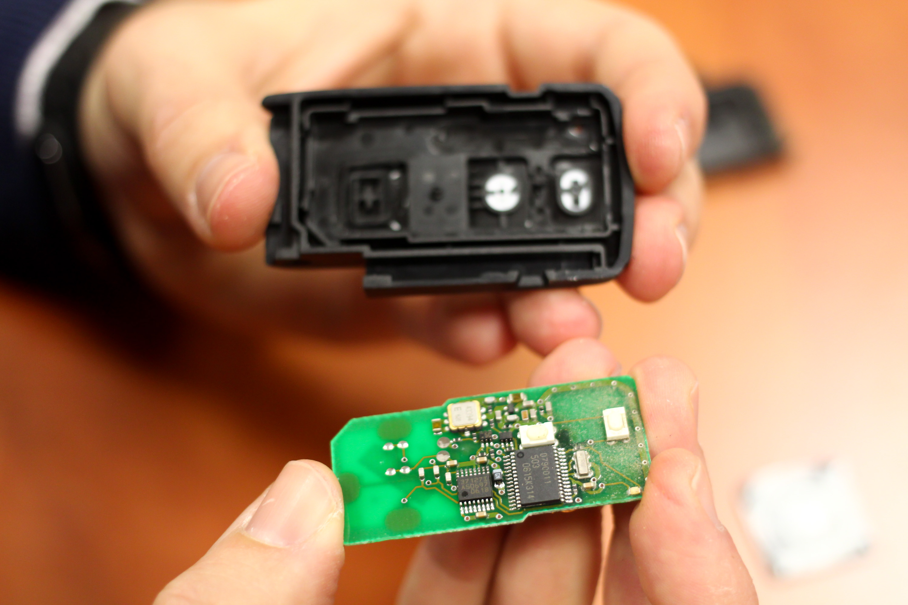 Ha szétszedtük a kulcsot, ezt az elektronikát kell átrakjuk az új házba