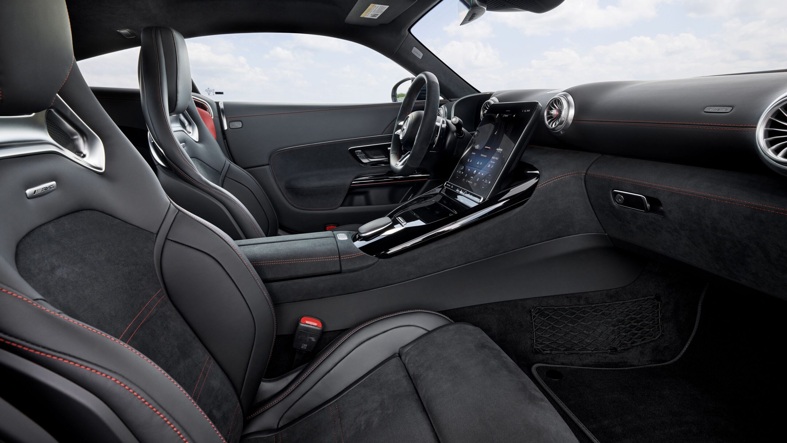 Nagyobb erőt juttat a PRO a 4MATIC+ összkerékhajtási rendszeren keresztül a négy kerékhez, a sima 63-hoz képest 27-tel több lóerő és 50 Nm-rel több forgatónyomaték, összesen 612 lóerő és 850 Nm áll rendelkezésre. Ehhez növelni kell a fékerőt is, amiről a Mercedes-AMG eddigi legnagyobb, 420 mm átmérőjű kerámia-titán féktárcsái gondoskodnak elöl - ezekhez fekete fényezésű féknyergek járnak. A PRO további fontos újítása az átdolgozott hűtőrendszer: két új radiátor került előre a széleken lévő új légbeömlőkhöz, de saját, vízhűtéses rendszert kap a differenciálmű, az első és a hátsó tengely, valamint az összkerékhajtás is. A már említett aerodinamikai újítások pedig nem csak a légellenállást csökkentik, az első fékekhez is több levegőt juttatnak. Összességében fél másodperccel hamarabb éri el a 200 km/h-t a PRO álló helyzetből, mint a sima 63, így minden bizonnyal versenypályákon is másodperceket verne rá körönként. Az már csak hab a tortán, hogy alapárasak az AMG Performance sportülések és a Nappa bőrrel vagy az Alcantarához hasonló anyaggal bevont sport kormánykerék.