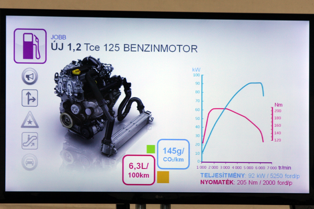 Hajjaj, melyik motort válasszuk? Az alap 1.2-es benzinest (akár LPG-vel)? A 3 hengeres turbós benzinest? Nem, itt és most a paletta csúcsát versenyeztetjük meg, s ő a 90 lóerős 1.5 dCi 12 mp-es gyorsulással 100 km/órára és 3,8 l/100 km-es fogyasztással. A váltó mezei 5 fokozatú, na bumm, és még stop-start rendszer sincs. Hogy utazóautónak is optimális legyen, kérünk még bele határolós tempomatot (60 e) és könyöktámaszt (25 e), hogy anya se zúzza le, tolatóradart (másik 60-as). Metálfény, alufelni, bőrkormány és más hívságok nem kellenek. Mondjuk egy pótkerék sosem árt (15 e).