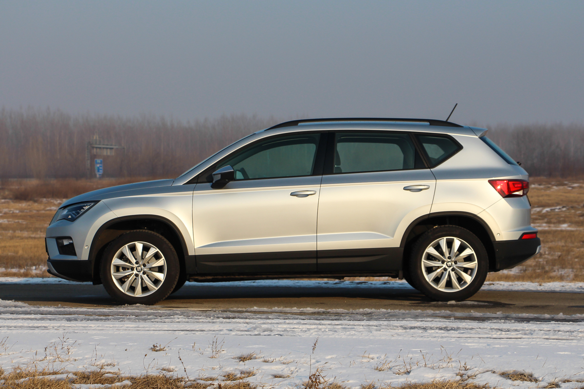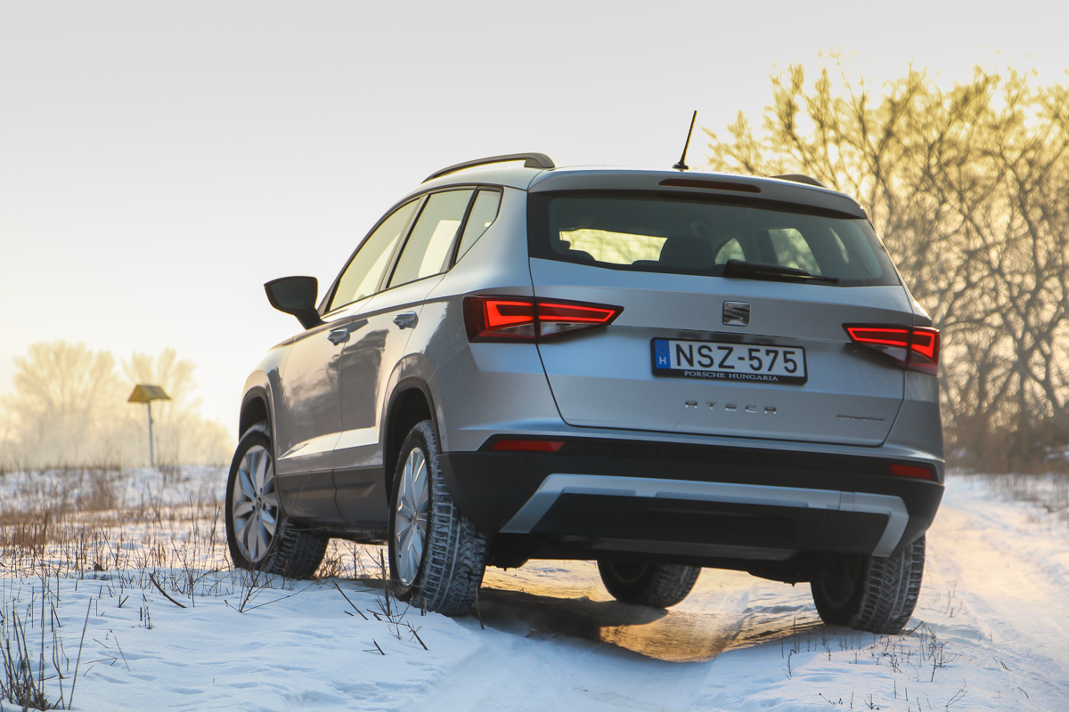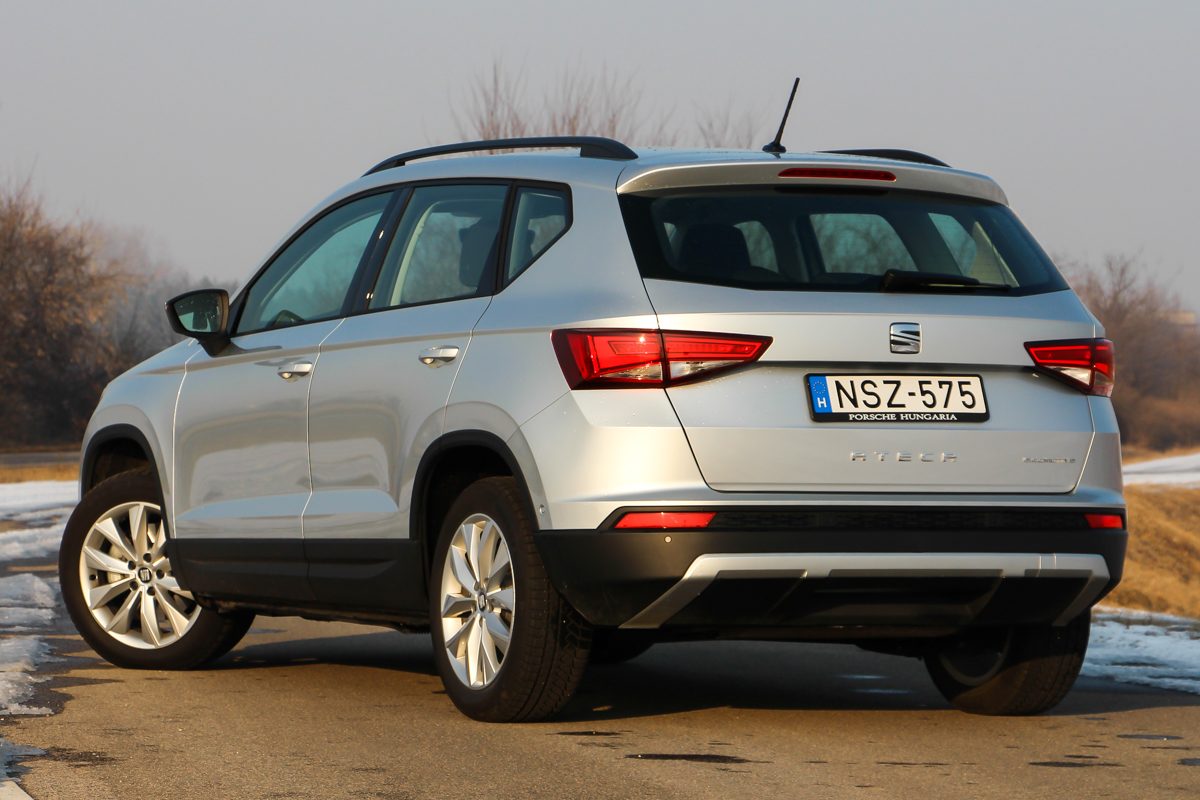 Tényleg kompakt. Nem véletlenül lett Autobest-díjas 2016 végén az Ateca, ezzel megelőzve a Peugeot 3008-at és a Toyota C-HR-t is. Az európai újságírókból álló zsűri az Atecát tartotta a legjobb vételnek a mostani európai SUV kínálatból. Szögletes formáival, arányaival érzésre definiálja, hogy mit is jelent kompakt SUV-nak lenni ma. Nem túl hosszú, nem túl széles, bárhol bármikor elfértem vele, a városi forgataggal is könnyedén elboldogult, ahogy a városon kívül, a terepen sem veszett el. Nem túl feltűnő, mégis jó ránézni. Épp elég terepjárós, a körbefutó műanyagozát néhol ezüstszínű elemekkel törtek, vagy inkább vadítottak. A Volkswagen-rokonság szembetűnő, a szokásos SEAT-formákat hozza kívül-belül. Alapjául a jól ismert MQB padlólemez szolgált, így sok újdonságot itt sem érdemes keresni.