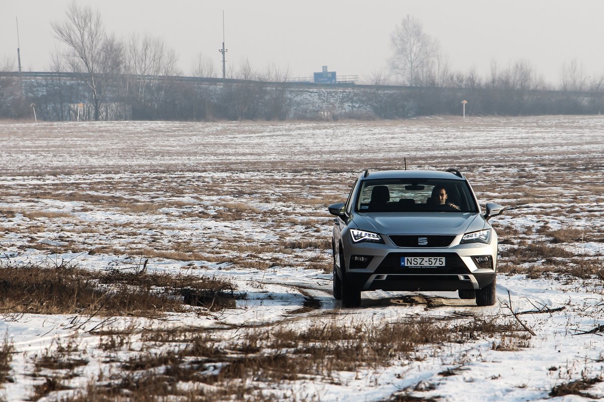 Nem először. Már járt nálunk a SEAT első (valódi) szabadidő-autója, akkor viszont a négyhengeres 1.4 TSI-vel vallott az Ateca. Bár a felszereltség ugyanaz, tehát Style Wave, a képlet mégis teljesen más a legkisebb benzinesével. Gyönyörű reflexezüst metál fényezéssel, 17 colos könnyűfém felnikkel, az egyik legszebb rajzolatú LED-es fényszórókkal, de ami még fontosabb, a legkisebbnek számító háromhengeres, 1,0 literes TSI erőforrással próbáltam a SEAT első SUV-ját, ami jelen motorral csak elsőkerék-hajtással rendelhető. Tipikus SUV-képlet, az Ateca mégis az aszfaltról letérve lepett meg igazán.