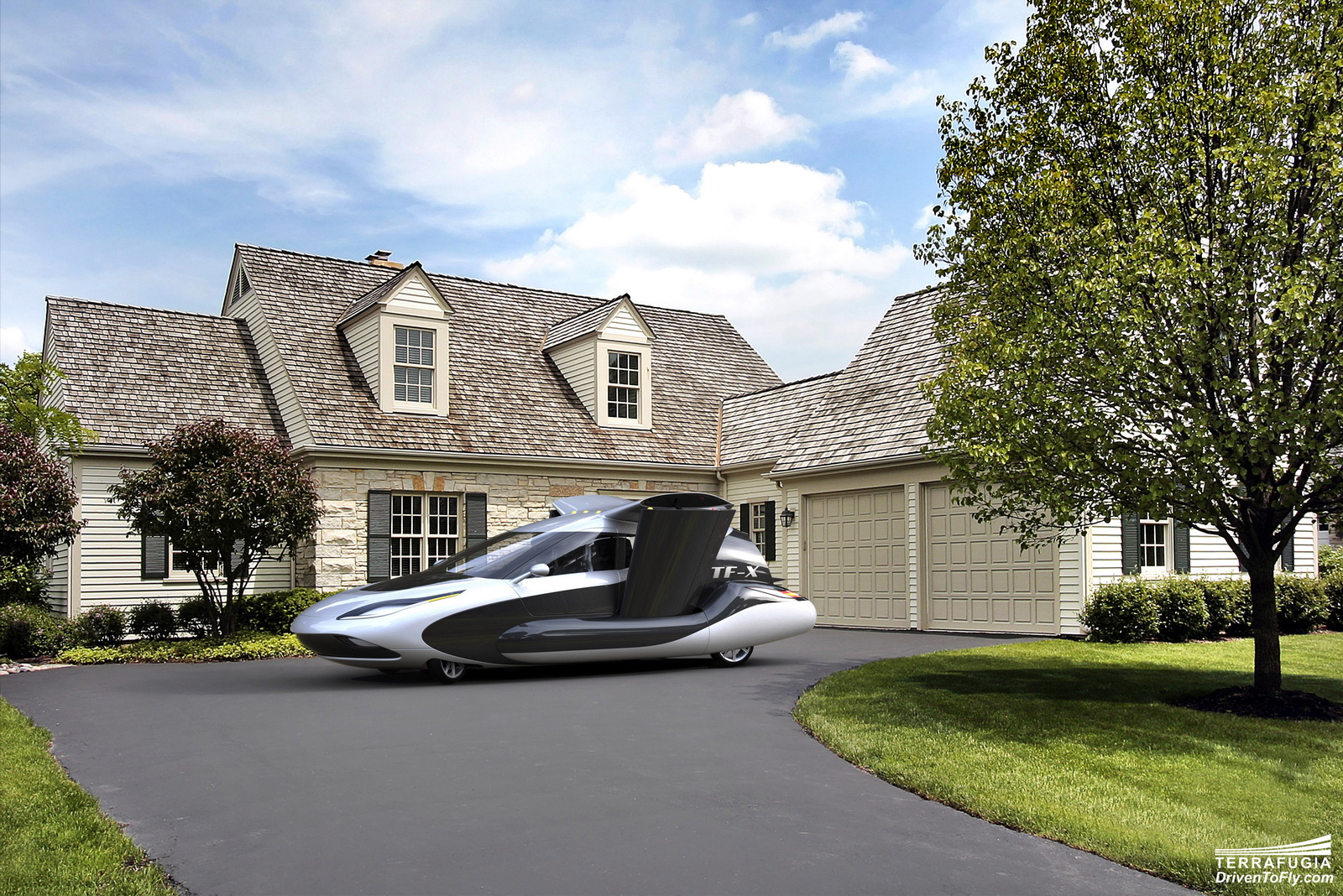 A repülőautók építéséről híres amerikai Terrafugia az új TF-X esetében törekedett arra, hogy a külseje a siker érdekében minél inkább autós legyen. Két gépük már a valóságban is megállta a helyét, az új tervek azonban egy sokkal szebb repülőautót mutatnak nekünk. A négykerekű járgány felszállóképességét a billenőrotoros erőforrások adják, amik a függőleges fel- és leszállást is lehetővé teszik. A repülésben nem ismeretlen ez, hisz többek között ilyen megoldást találhatunk a jelenleg csak az amerikai légierő által használt V-22 Osprey esetében is. Az ígéret az, hogy a TF-X 4 négyüléses személyszállító lesz, hibrid hajtásláncot kap, repülési hatótávja 800 km, utazósebessége 320 km/óra lesz. Elektromos motorjának feltöltése a 300 lóerős belső égésű motoron keresztül, valamint az autók töltésére is alkalmas csatlakozóknál lesz lehetséges.