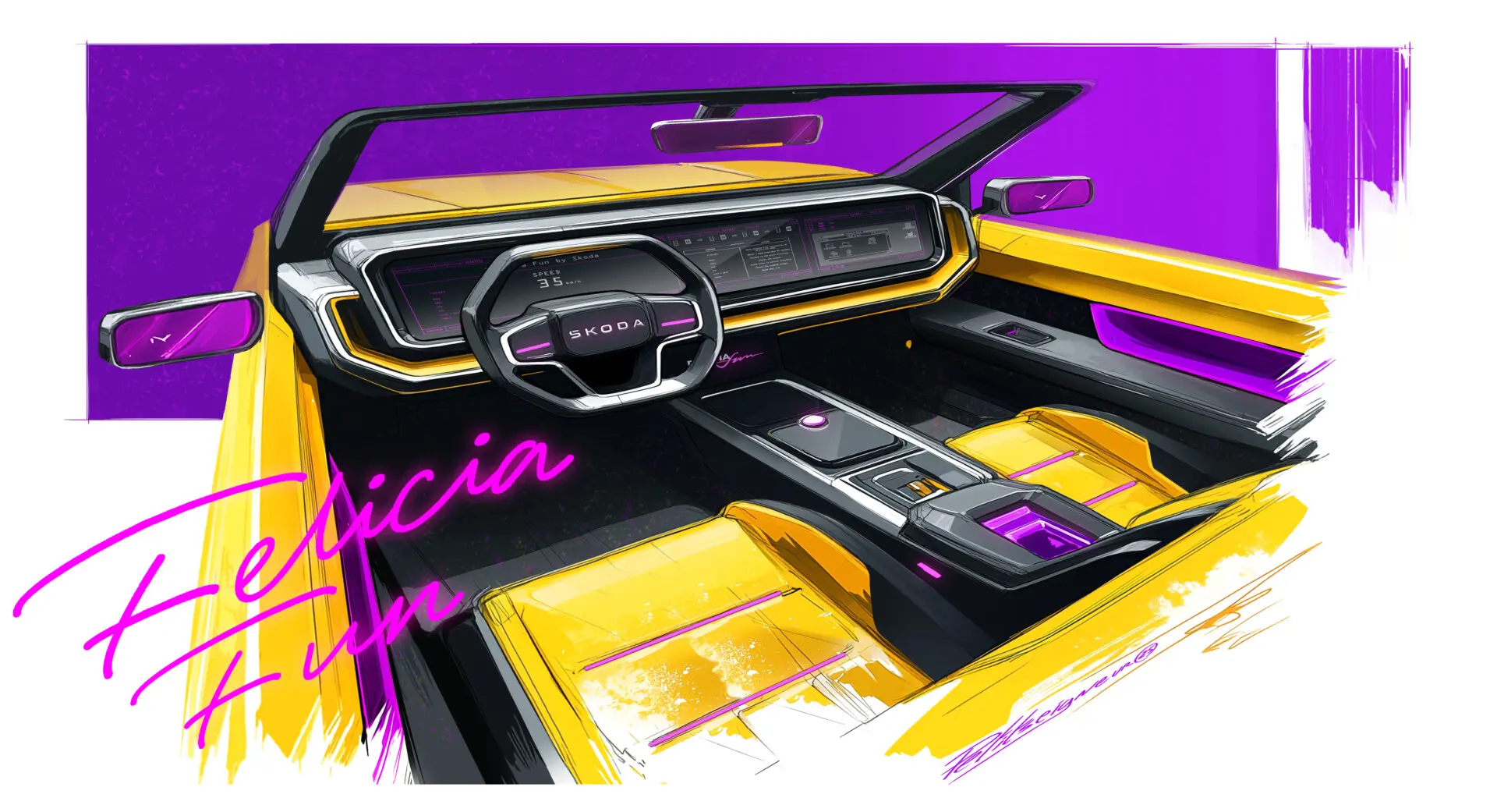 Julien Petitseigneur ezt a Škodát álmodta újra a Modern Solid formanyelv alapján. Bár az autó alapvető karakterisztikája megmaradt, jó pár helyen felfedezhetőek az aktuális stílusjegyek. Így elöl a korábbi embléma helyett betűkkel jelenik meg a márkajelzés, a felnik a márka villanyautóin található aerohatékony dizájnra emlékeztetnek. Hátul maradt az emblematikus légterelő, míg a Škoda feliratot a platós hátulján végigfutó LED-csíkba integrálta a tervező.
