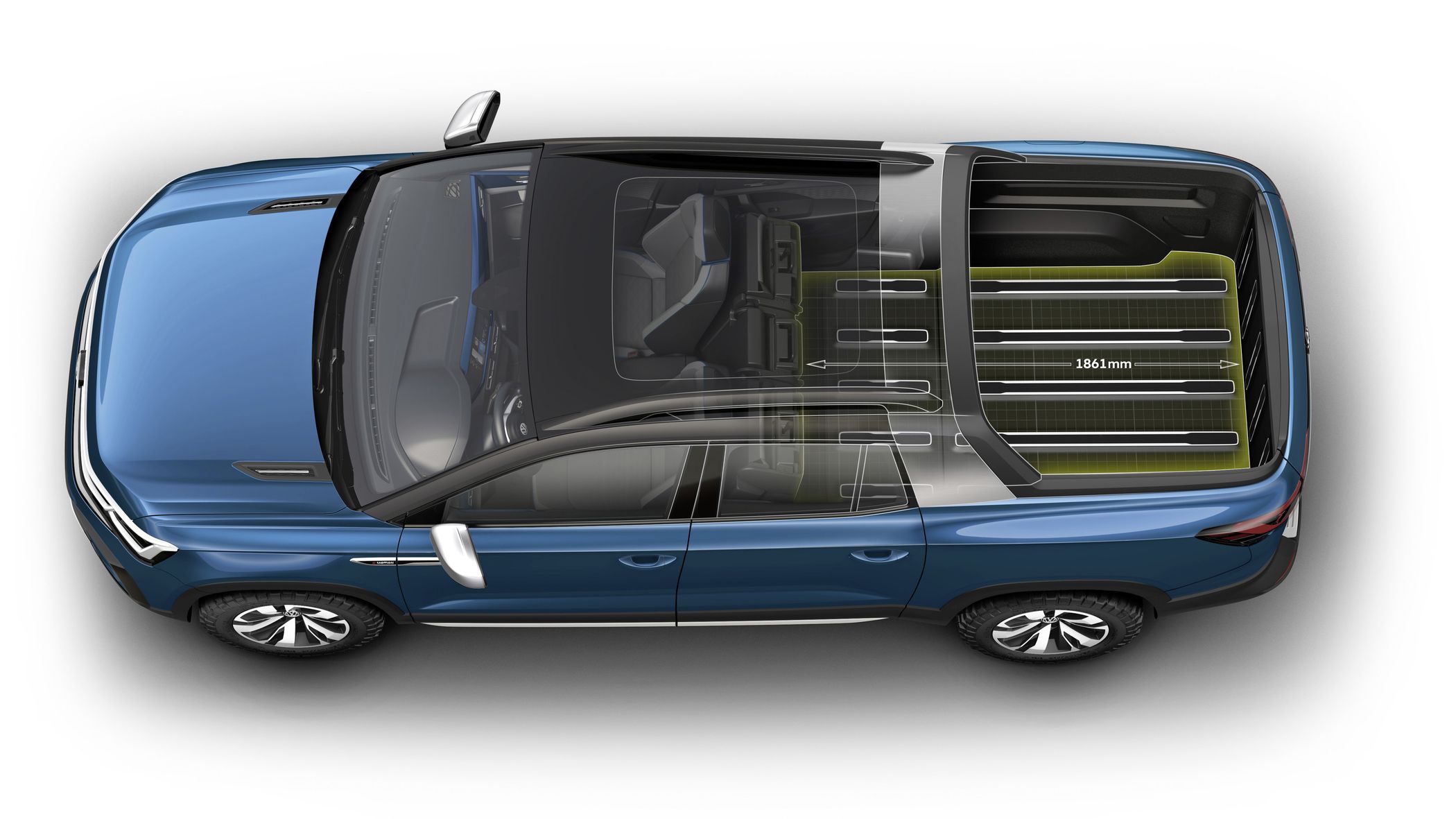 Titokzatoskodás nélkül elárulta a Volkswagen, hogy a Tarok Concept néven bemutatott pickupot már jövőre gyártani kezdik és a szériaváltozat csak minimális mértékben tér majd el a koncepcióautótól. Az önhordó karosszériás Tarok is az MQB padlólemezre épül, az autó teljes hossza megközelítőleg öt méter. Bár „duplakabinos”, tehát hátsó ülésekkel is felszerelték, azok akár le is dönthetők, amikor nagyobb raktérre van szükség. Alaphelyzetben 1206 milliméter hosszú a plató, ám az ülések ledöntésével már 1861 milliméteresre nyújtózik.