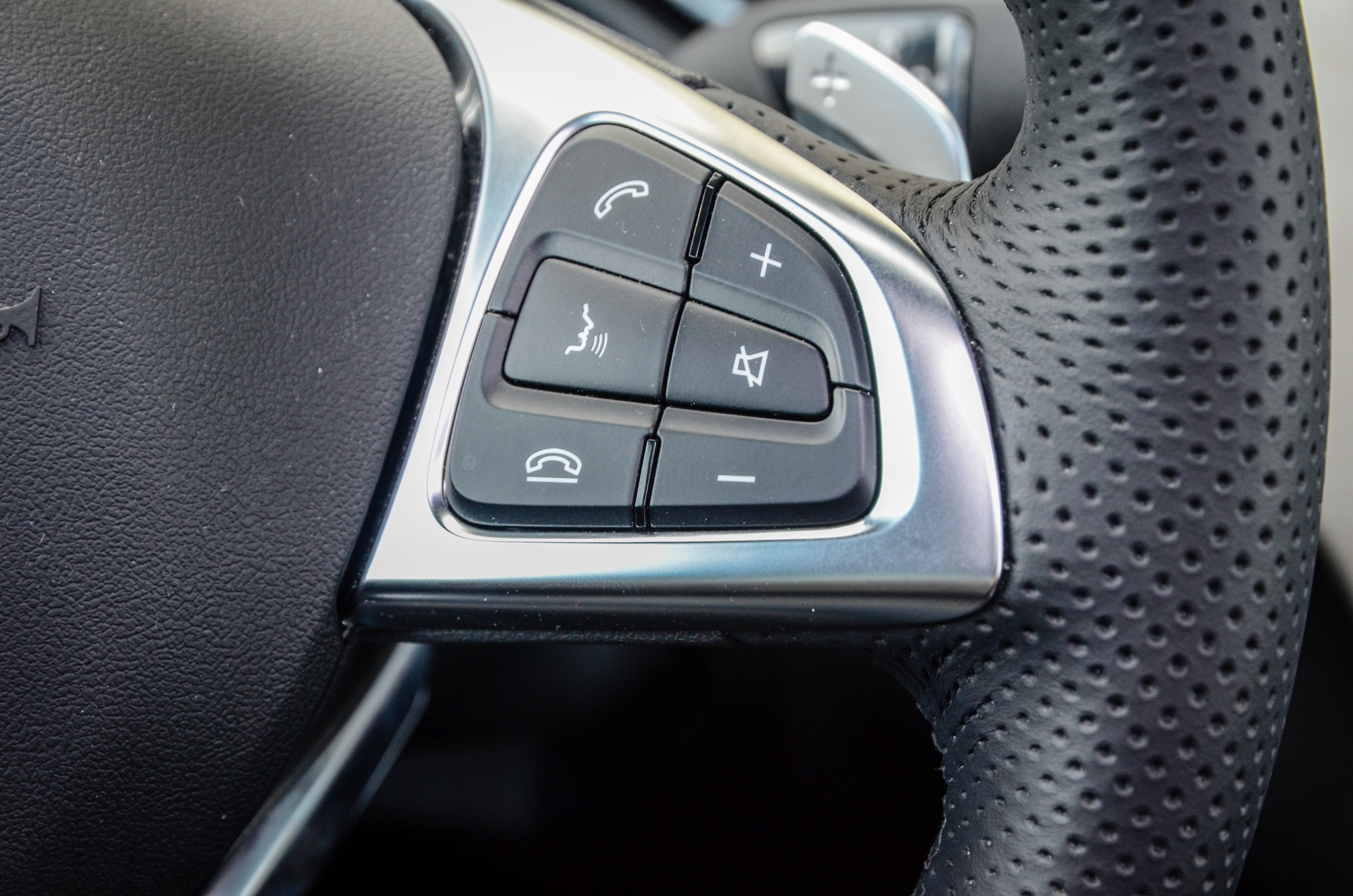 A négynek álcázott dupla kipufogóból már csak a lángcsóvák hiányoznak. Sport+ módban versenyautós ropogás, rotyogás és csattogás tör elő belőle