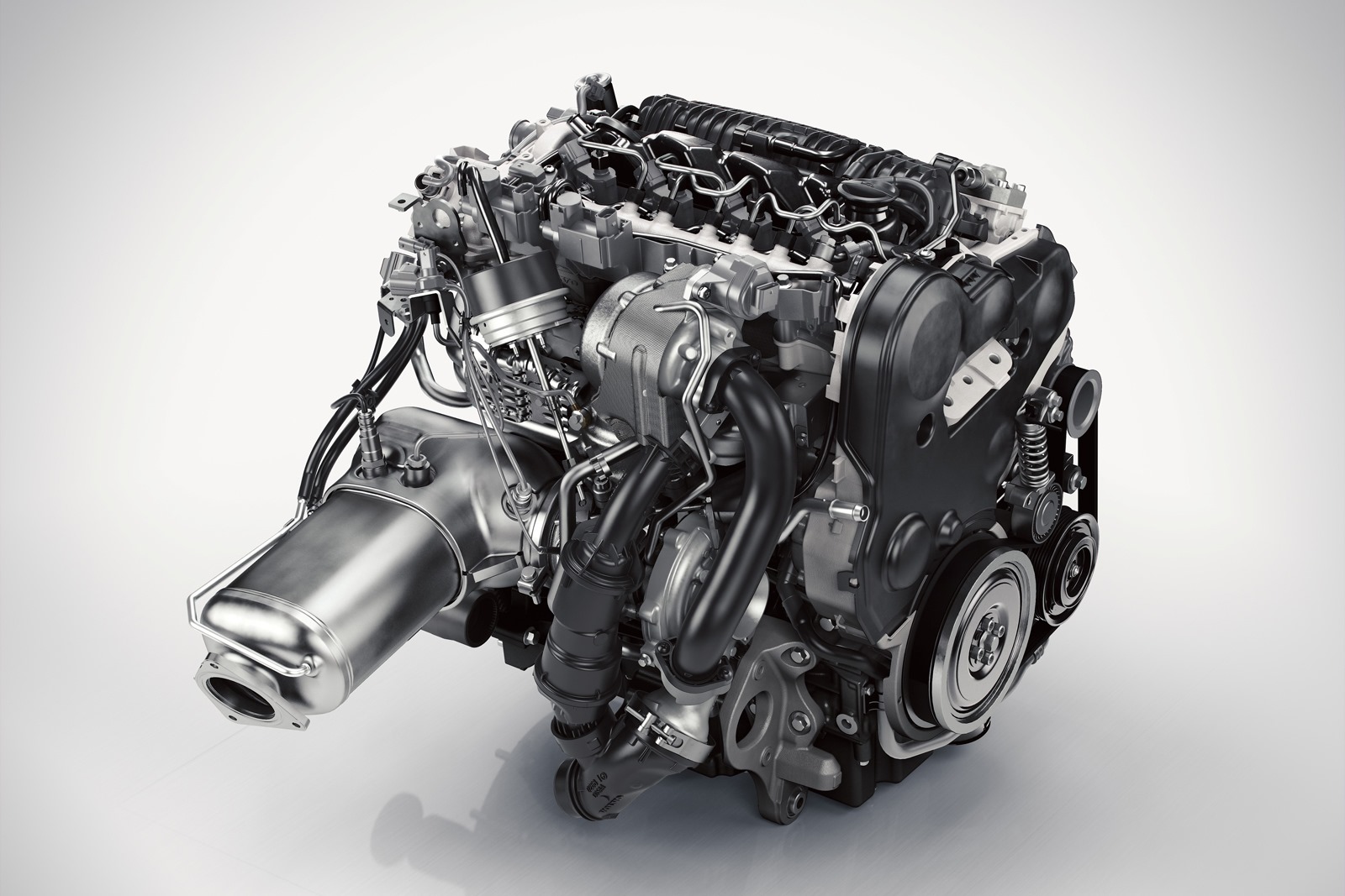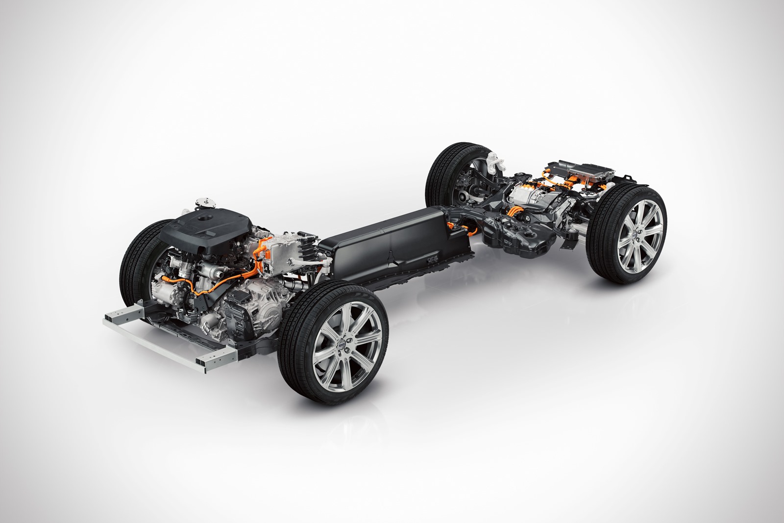 A Volvo legújabb motorcsaládja dízelként és benzinesként is négyhengeres. Az új motor az XC90-ben egy elektromotorral kiegészítve, hibrid hajtásláncba illesztve egy ekkora méretű autóhoz képest szinte hihetetlen számokat tud produkálni. Szén-dioxid kibocsátása alig 60 g/km lehet, közben a rendszer összteljesítménye 640 Nm nyomaték mellett 400 lóerő. A kocsi Volvo szokás szerinti elnevezése T8 lesz. Benzinmotorja 2,0 literes, mint ahogy fentebb írtuk, négyhengeres és kettős feltöltésű, kompresszoros és turbós is. Ez hajtja majd az első kerekeket, a 80 lóerős villanymotor meg a hátsókat. A kompresszor alacsony fordulaton is tölt, ezzel egy hagyományos, erősebb motor érzetét kelti, magasabb fordulaton meg a turbó tol még egy nagyot. Ezt kiegészítve az elektromotor azonnal a maximális nyomatékával kapcsolódik be a hajtásba, így komplexen a gyorsulás is kiemelkedő lehet.