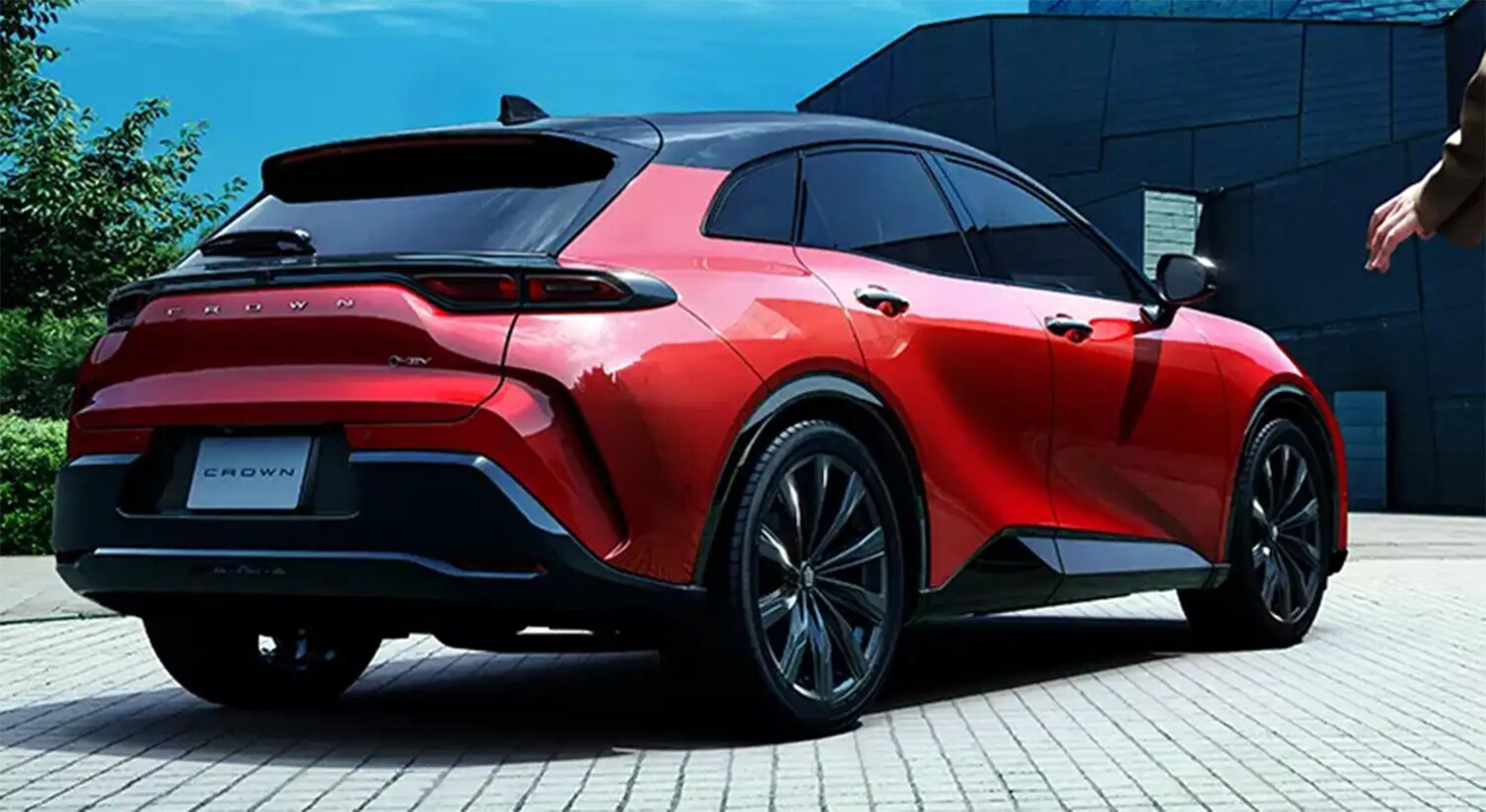 Elég megnézni egymás mellett a most bemutatott Crown Sport modellt és a szériát eredetileg felvezető Crown Crossovert: utóbbi majdhogynem konzervatívan mutat többlencsés fényszórójával. Ehhez a különbséghez persze a visszafogottra formázott ajtók és a diszkrét domborulatú hátsó kerékdob is hozzájárul, miközben a Crown Sportot szinte szétveti a feszültség. Az újonc optikai fókuszpontja a hátsó tengely magasságában összpontosul, azt sugallva, hogy vérbeli hátsókerék-hajtású sportautóról van szó. Ez sajnos azonban csak részben igaz, hiszen bár a Crown Sport mindkét választható konfigurációjában hajtott a hátsó tengely, a főszerep mégis az első kerekeké.